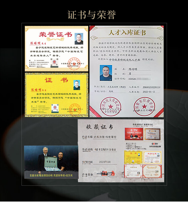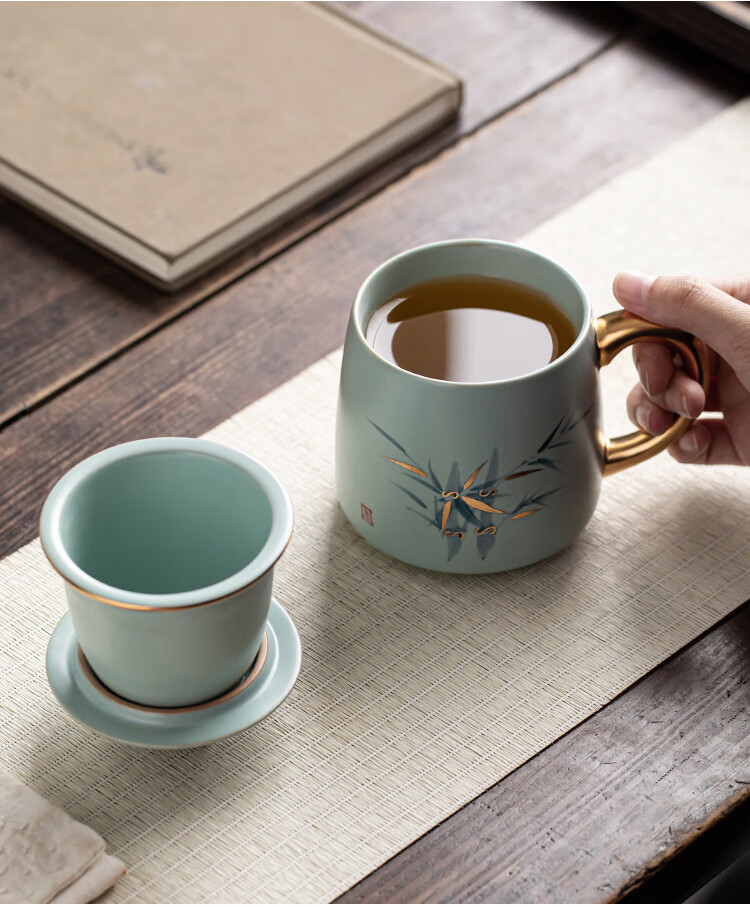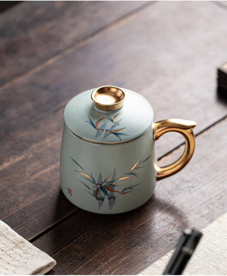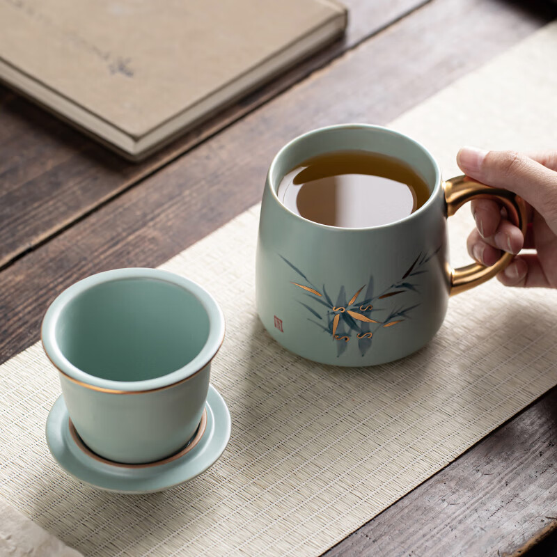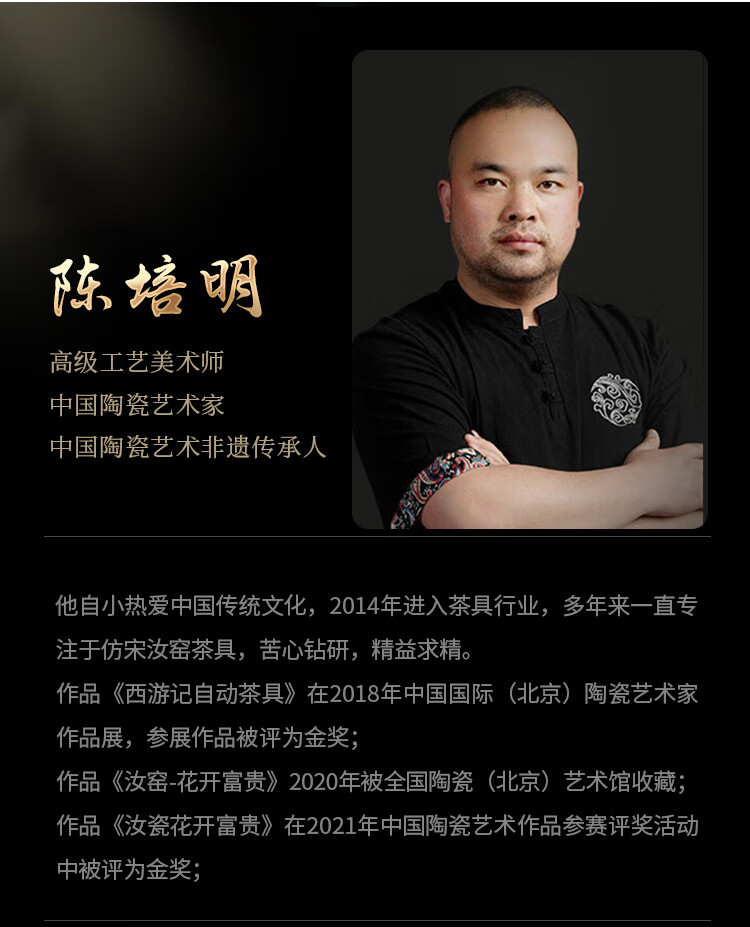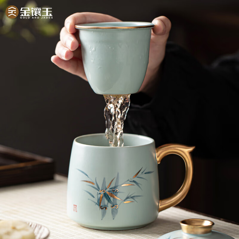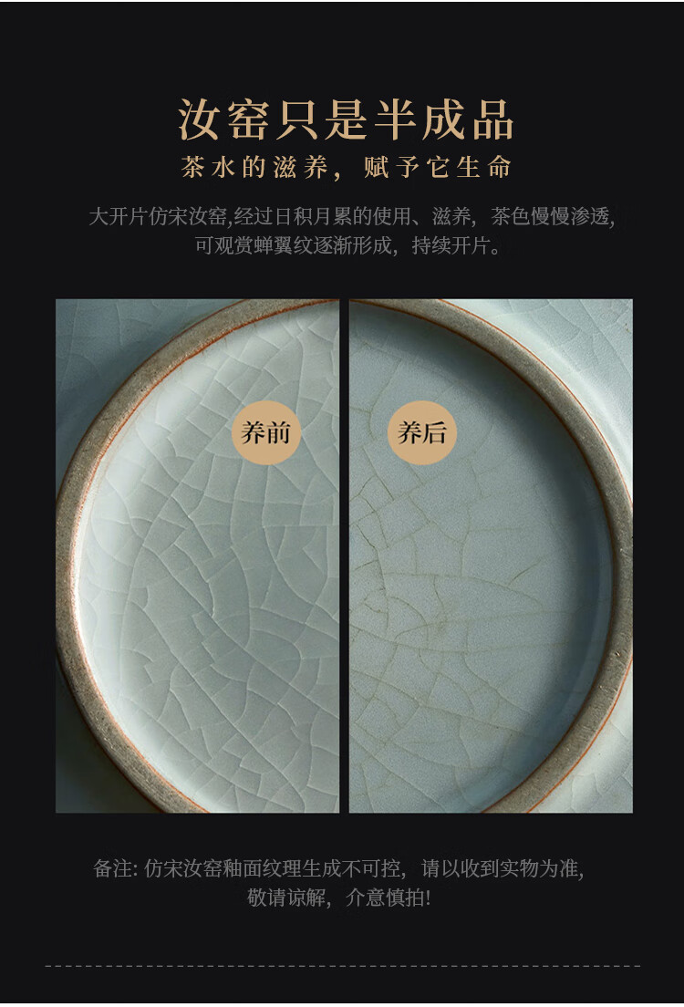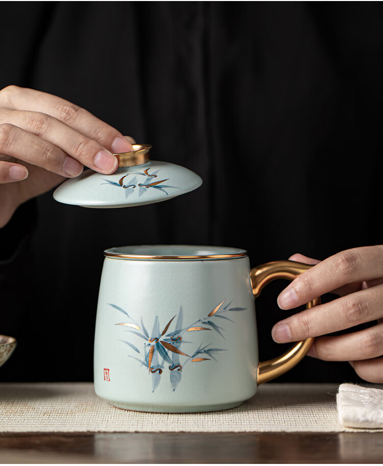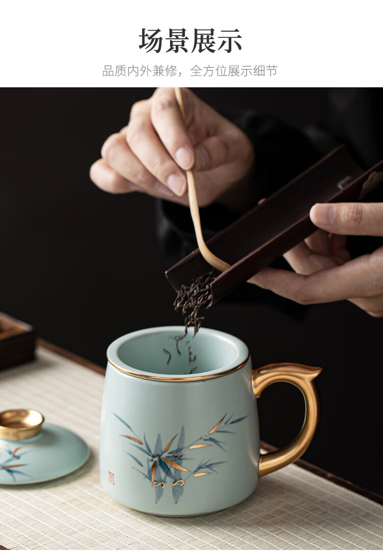 天青汝窑 可养开片 名家手绘 描金工艺 经典器型 茶水分离 图案雅致 礼赠佳品 材质:陶瓷 个数 1个 工艺 :高温烧制 配置清单 茶杯*1 证书*1 礼盒*1