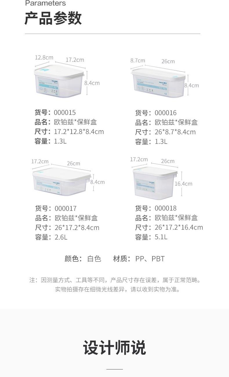 产品货号:000017 产品规格:26*17.2*8.4CM 产品容量:2.6L 产品材质:PP,TPE 产品克重:303.5g 外箱尺寸:80*53.5*36CM 包装方式:1PC/shrink Film 强抗细菌,盒身可视 冷热相宜,自带提手