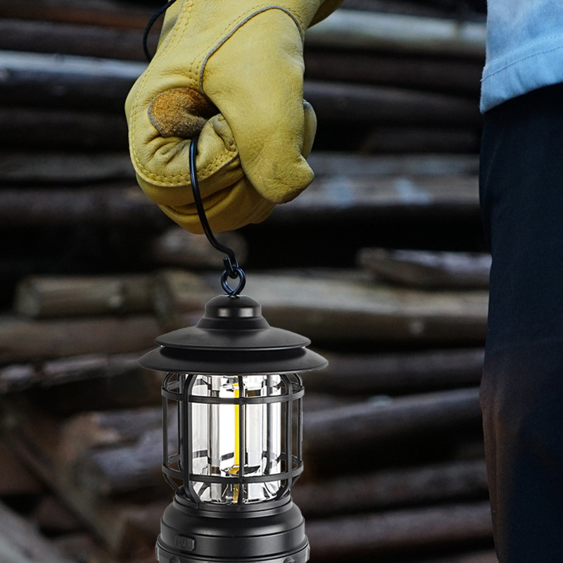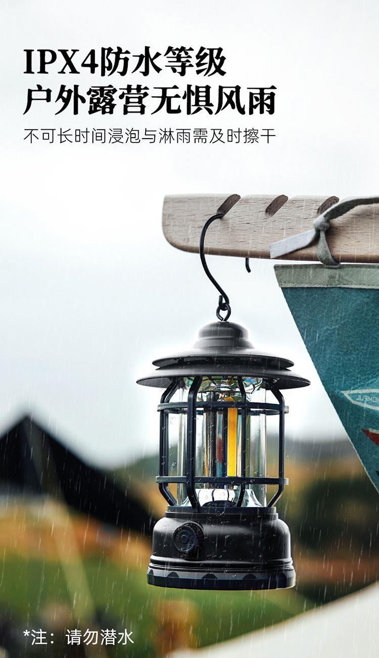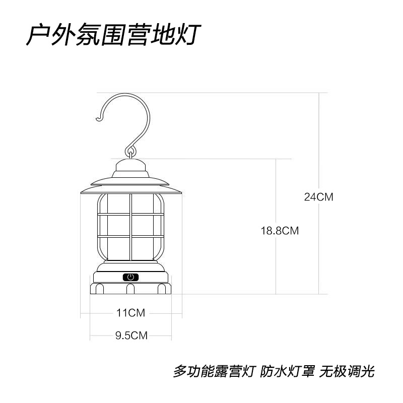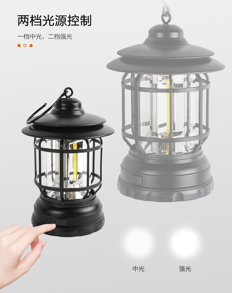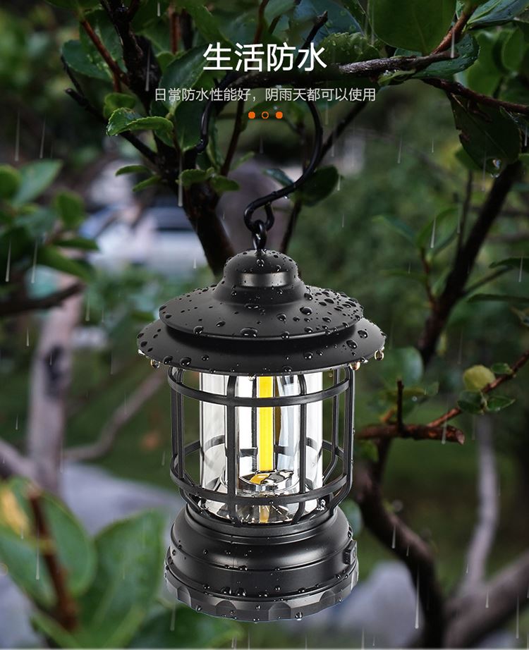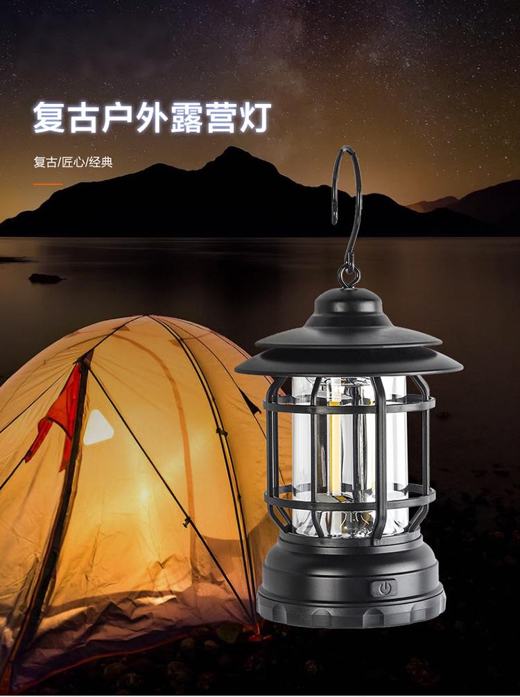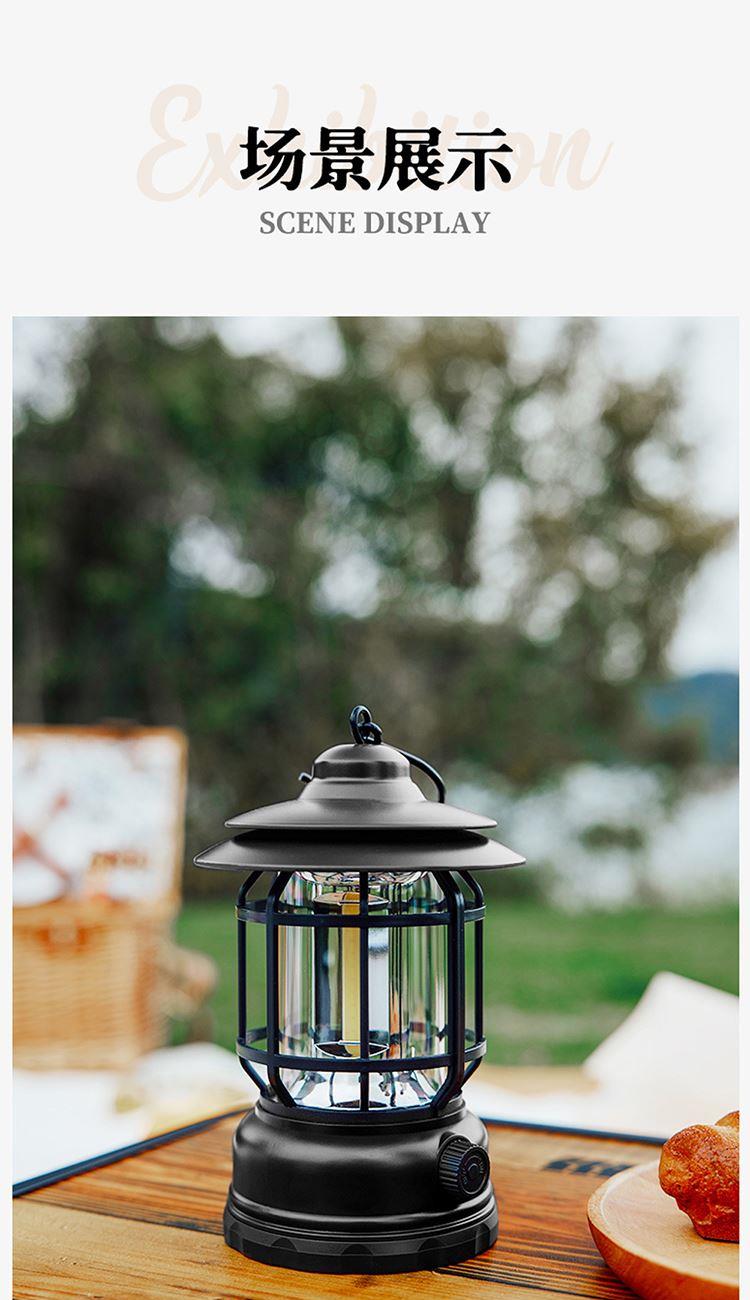 材质:ABS+PS 展开尺寸:9.5*18.5cm 电池:1200mAh锂电池 -TYPE-C充电 充电方式:USB充电 续航:3-6小时 颜色:复古绿、曜石黑 净重:0.25kg 1、便携提手设计,可提可挂; 2、1200毫安锂电池,持久续航3-6小时; 3、高亮COB灯珠,选用优质灯罩; 4、磨砂质感,复古新生; 5、防水性能好,阴雨天户外也可用;