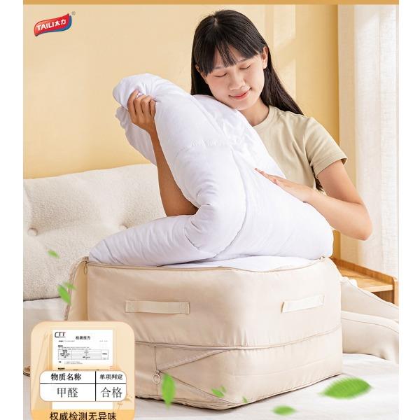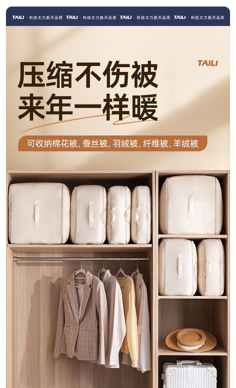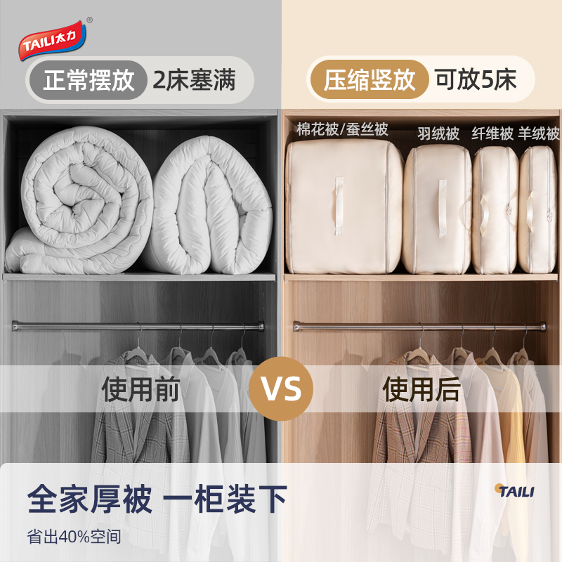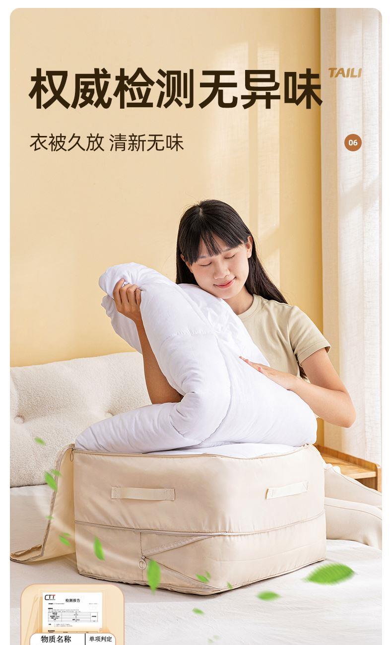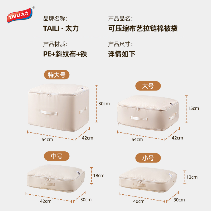 产品尺寸:40*30*12cm(2个) 材质:PE+斜纹布 封口方式:拉链 包装清单:厚被收纳袋 商品类型:收纳 图案:纯色 功能:便携,可压缩 产品描述:牛津布包边,耐用不风划;加固提手,科学受力更耐用,按压式收纳