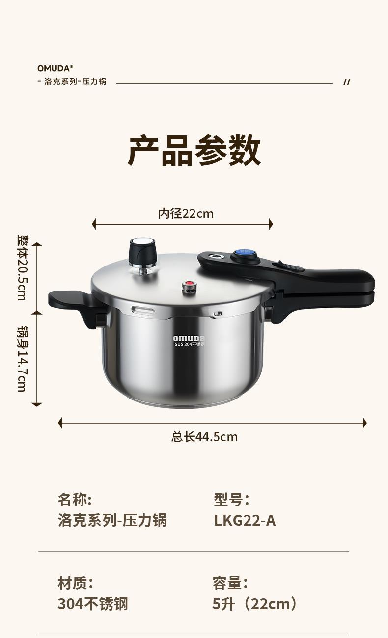 欧美达洛克系列-压力锅22CM(5升)LKG22-A