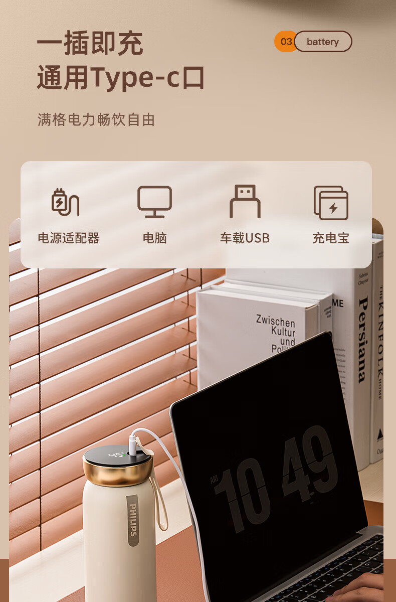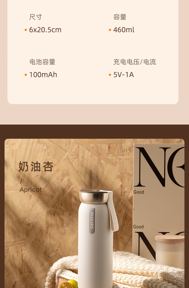 • 五种刷牙模式 1 支优化牙菌斑防御牙刷头 (C2) + 1 支优化亮白牙刷头 (W) 牙刷每分钟震动达 31,000 次智能控压 自动降速. • 飞利浦 Sonicare 先进的声波技术 新手模式45度巴氏握持手柄设计 • 德国进口刷头 ,搭载升级版马达 震动达 31,000 次/分钟 • 续航时间长达60天 ,IPX7级防水 ,USB接口充电 内置充电电池,通过 USB TypeC 口充电充满电后电池续航时间长达 90 天。 只需按一下杯盖上的数字显示屏,就会显示杯内实时水温。 食品级 SUS 316 内胆,使用安全 采用双层不锈钢抽真空保温技术,长达 12 小时保温保冷。 不含双酚 A 智能充电提醒,红色电池图标提醒充电,绿色电池图标表示充满电