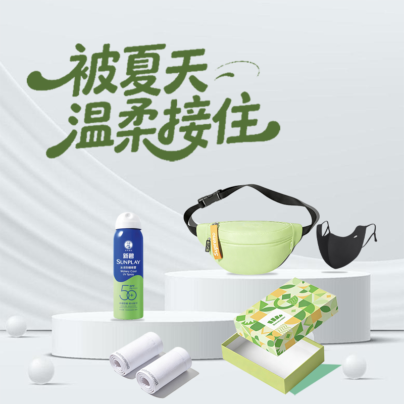 1.蕉下凉感防晒口罩*1(颜色随机) 2.蕉下高弹防晒冰袖*1(颜色随机) 3.曼秀雷敦冰凉防晒喷雾100ml*1 4.海礼欢颜大容量运动腰包*1 5.蕉下礼盒+同款礼袋(图片色)