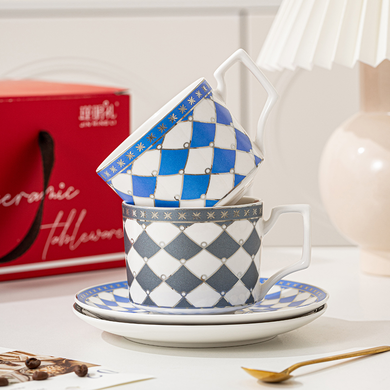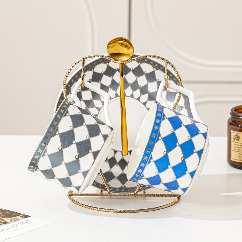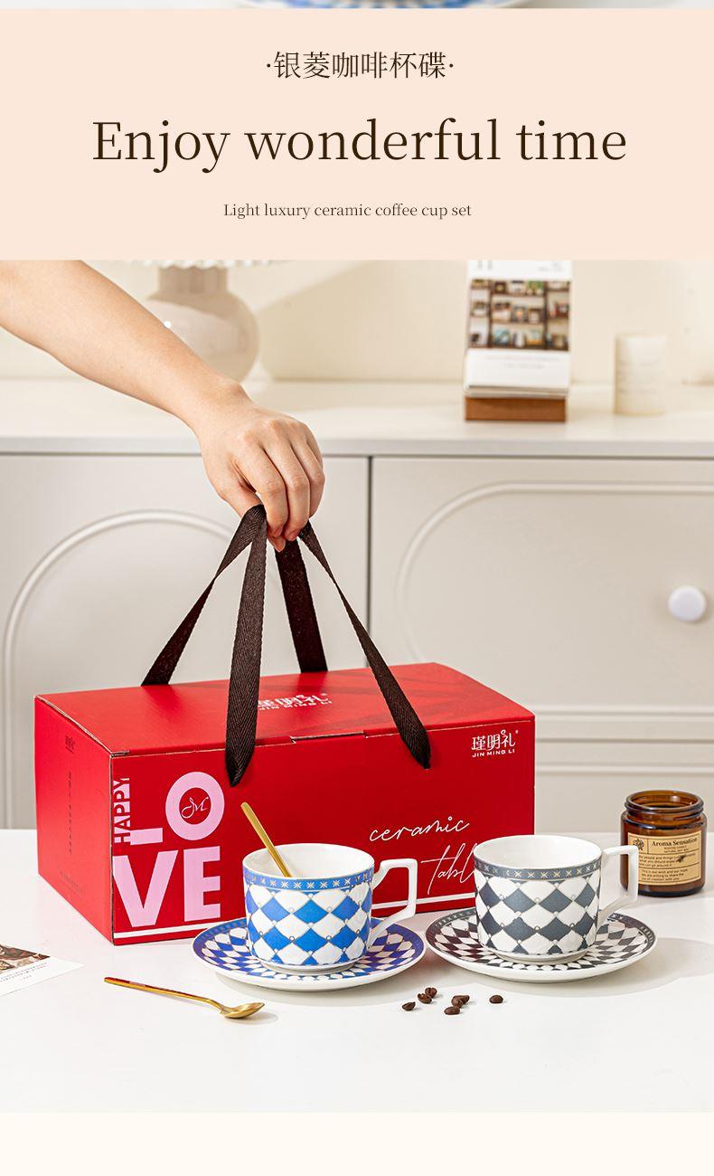 瑾明礼-银菱-咖啡对杯-2杯2碟2勺1铁架