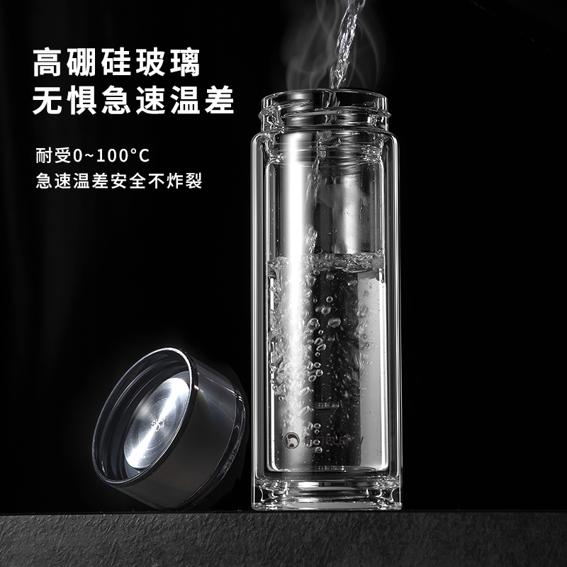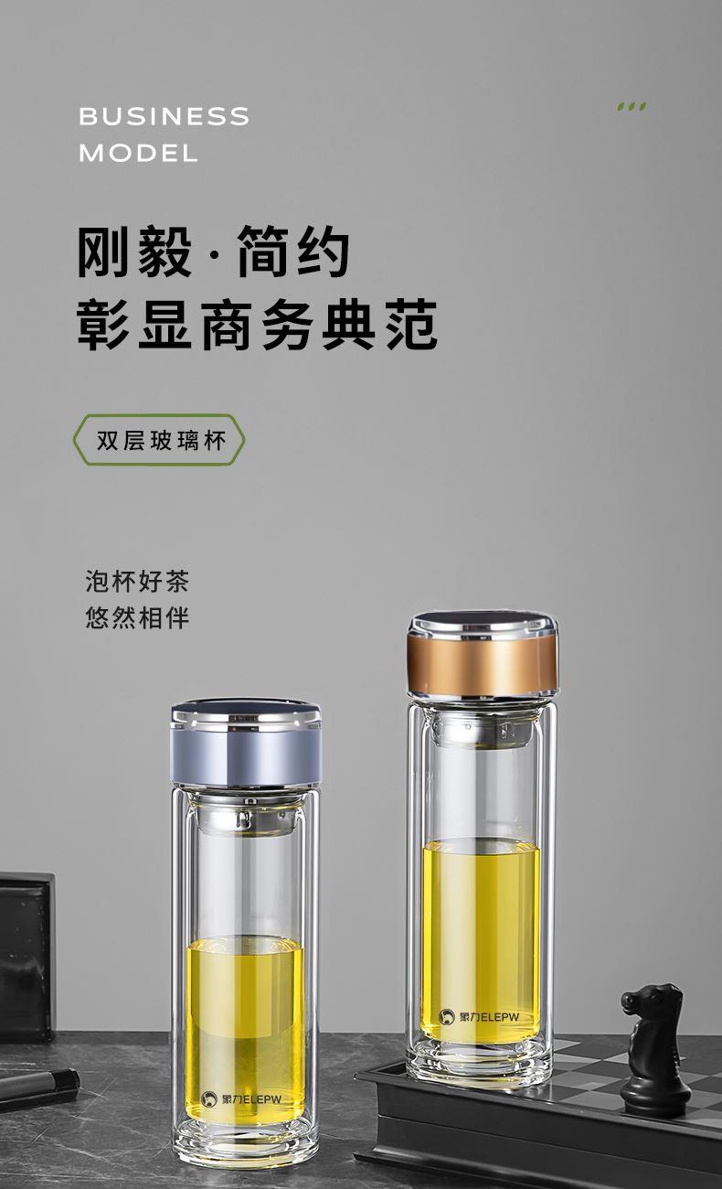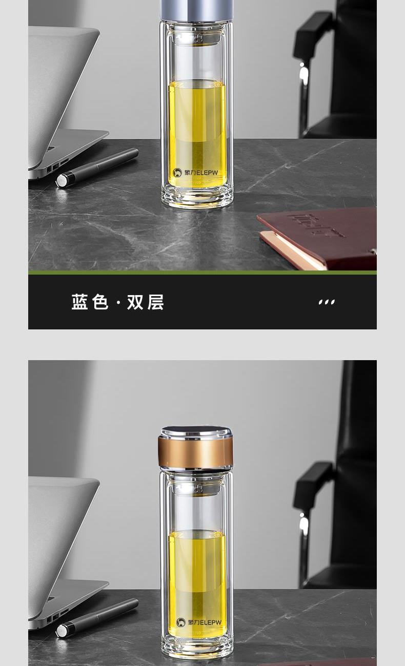 容量:320ml 颜色:金色 灰色 蓝色 材质: 304不锈钢提篮滤网,喝茶不吐叶。 不锈钢杯盖,商务外观,更适合定制。 双层高透亮高硼硅玻璃材质,耐急速瞬间温差。 杯体一体成型,手工加厚烧制,稳重耐用。 包装:单瓦盒
