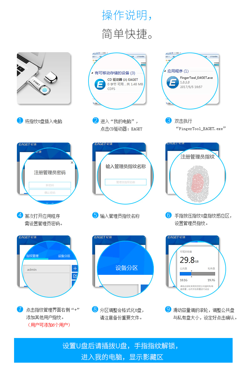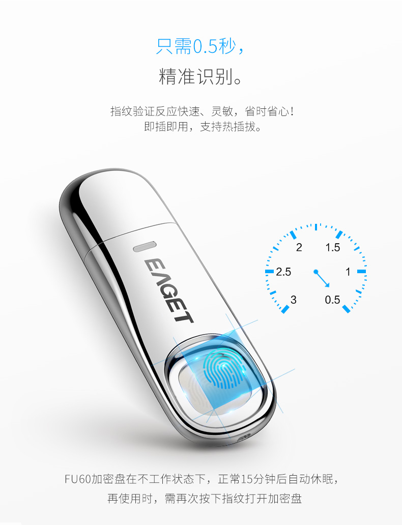 (EAGET)忆捷FU60指纹加密U盘防泄密全盘加密128G