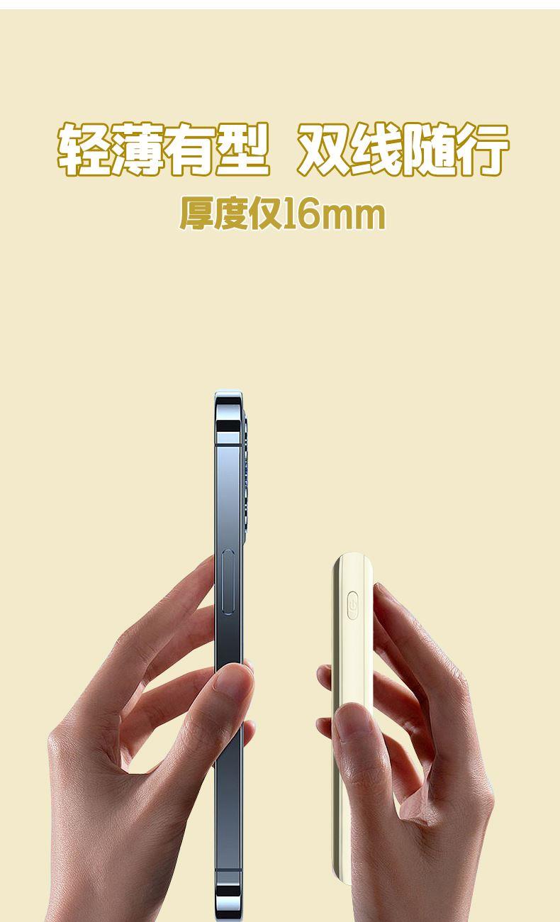 【推荐理由】: 10000毫安实标容量, 3C安全认证 22.5W超级快充,兼容PD20W 内置苹果/Type-C接口满足各种手机充电 超薄设计,携带方便 符合民航局标准,可随身携带