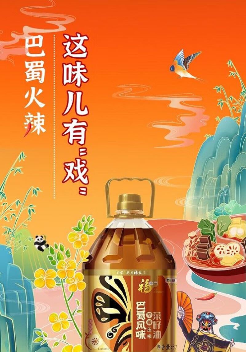 净含量:5L 推荐理由: 非转基因原料,巴蜀浓香正宗 甄选非转基因菜籽,川渝风味浓郁,复刻地道川菜香。 物理压榨,油烟适中,爆炒提味 物理压榨工艺,保留菜籽本香,烟点适中,适配川菜爆炒、水煮、火锅等。 5L 家庭大桶,中粮品质,实惠耐用 5L 大容量,央企福临门出品,日常烹饪性价比高,家用囤货优选。