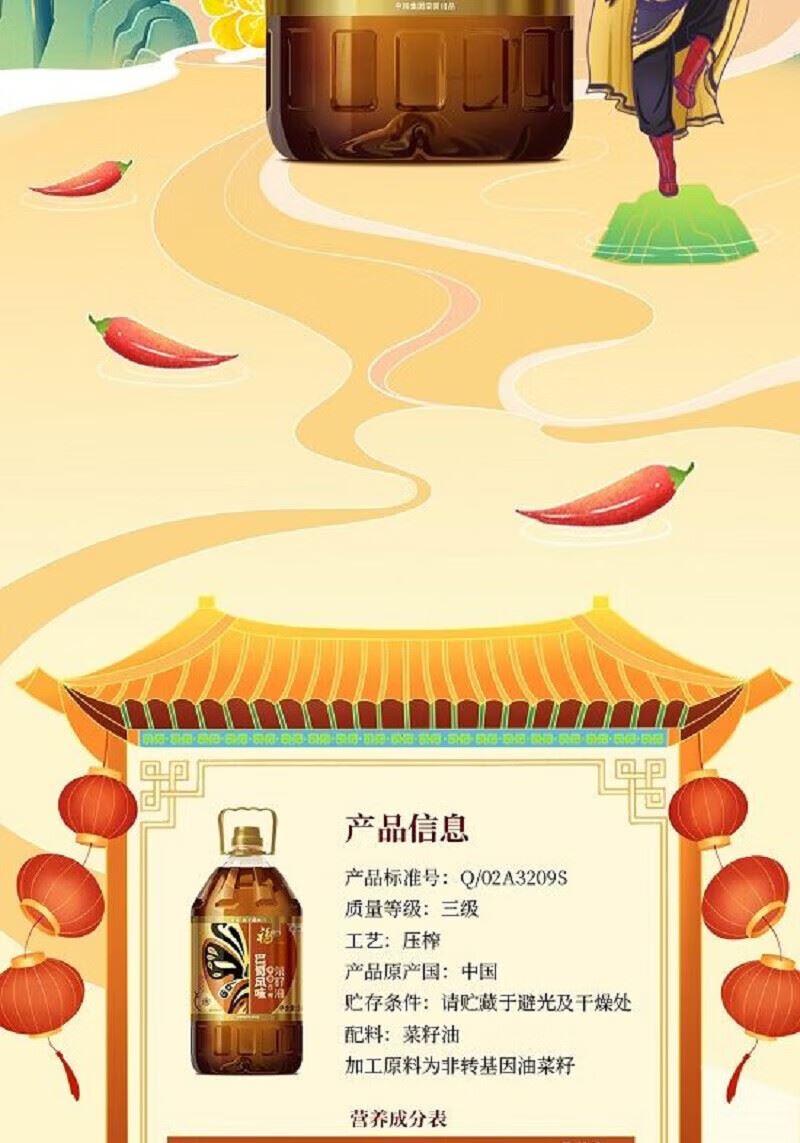 中粮福临门巴蜀风味菜籽油5L