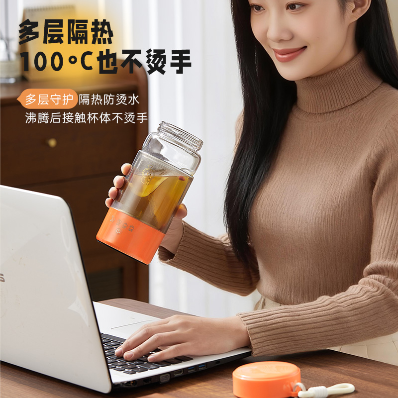 • 泉尔思便携式电热水杯(单杯)DSB-04DB玻璃内胆