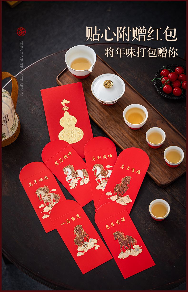 组件: 盖碗*1+茶海*1+主人杯*1 茶杯4+红包6+精品礼盒