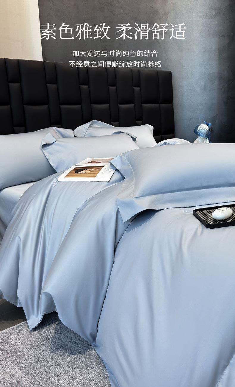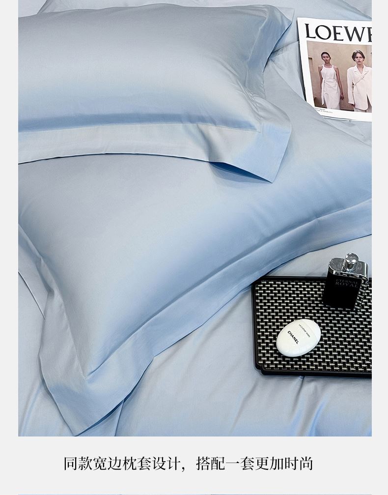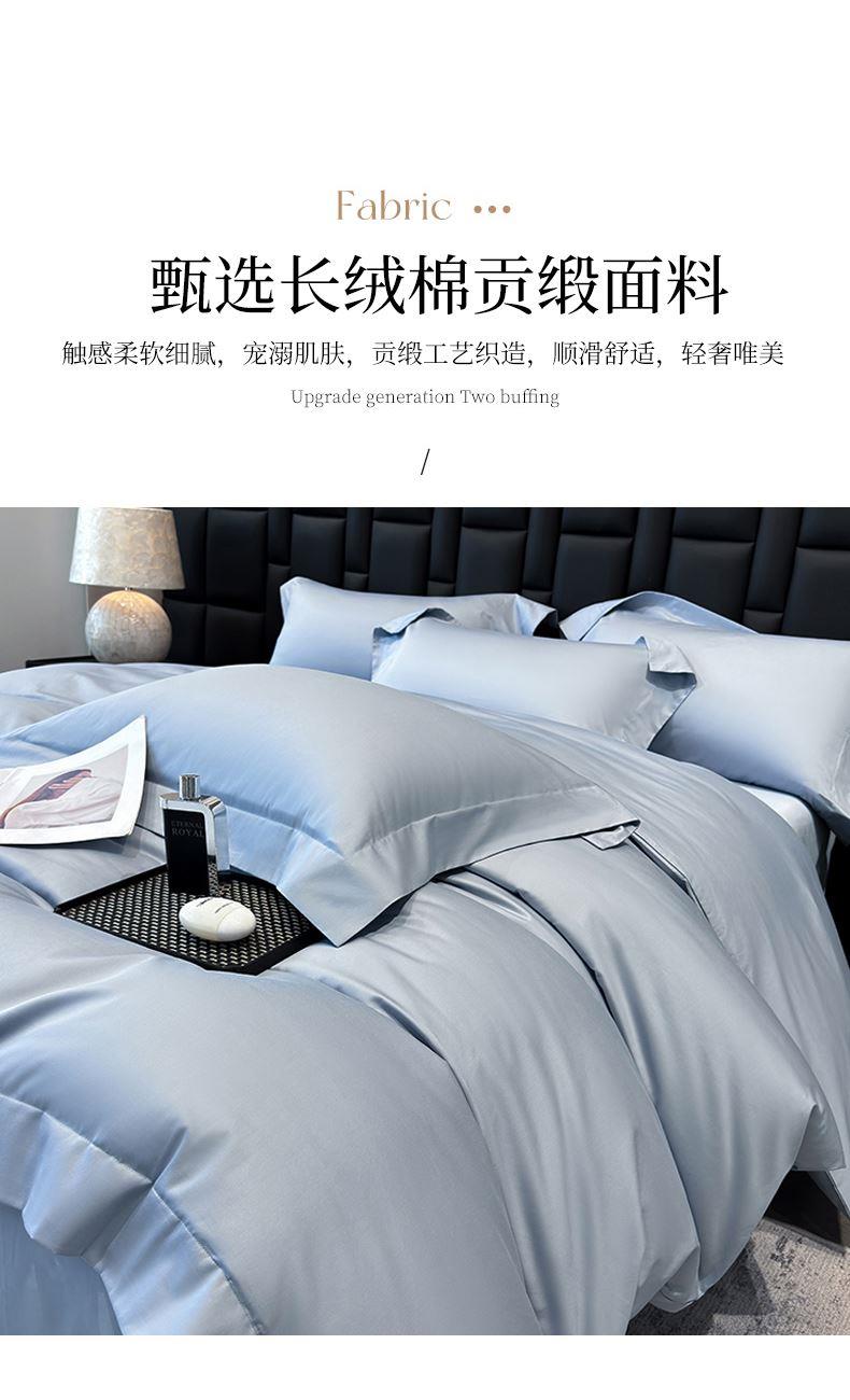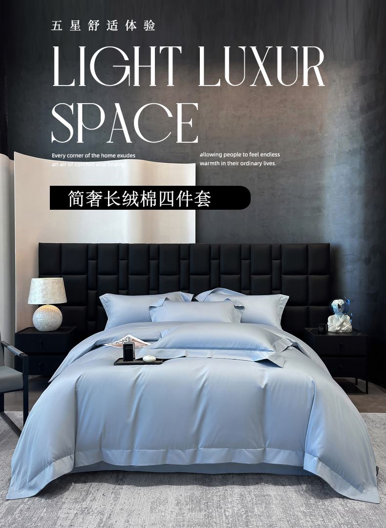 被套:200*230cm 床单:245*250cm 枕套:48*74cm*2 面料:长绒棉 产品包装:精美礼盒 包装尺寸:43.5*33*10cm 特点:长绒棉具备非常高的舒适度及“质感”,纤维柔长。具有丝绸般光滑、垂感好,面料色牢度高,久洗不褪色,耐磨耐用,抗皱性好,不易起球。