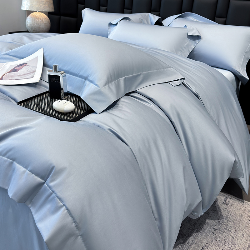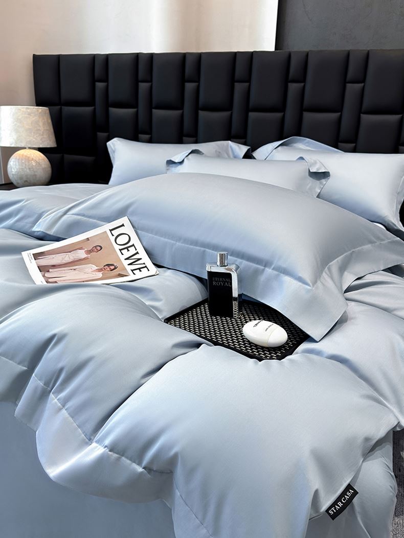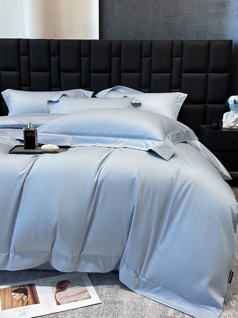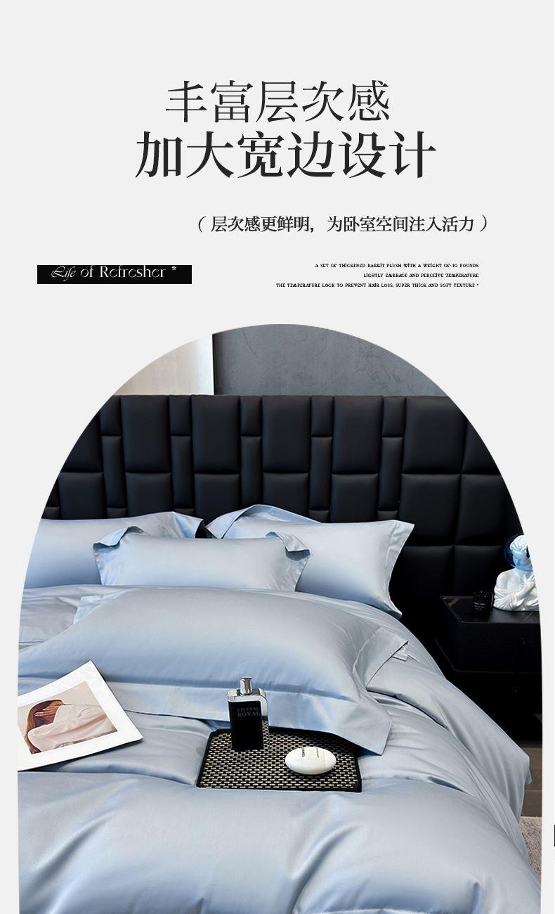 被套:200*230cm 床单:245*250cm 枕套:48*74cm*2 面料:长绒棉 产品包装:精美礼盒 包装尺寸:43.5*33*10cm 特点:长绒棉具备非常高的舒适度及“质感”,纤维柔长。具有丝绸般光滑、垂感好,面料色牢度高,久洗不褪色,耐磨耐用,抗皱性好,不易起球。