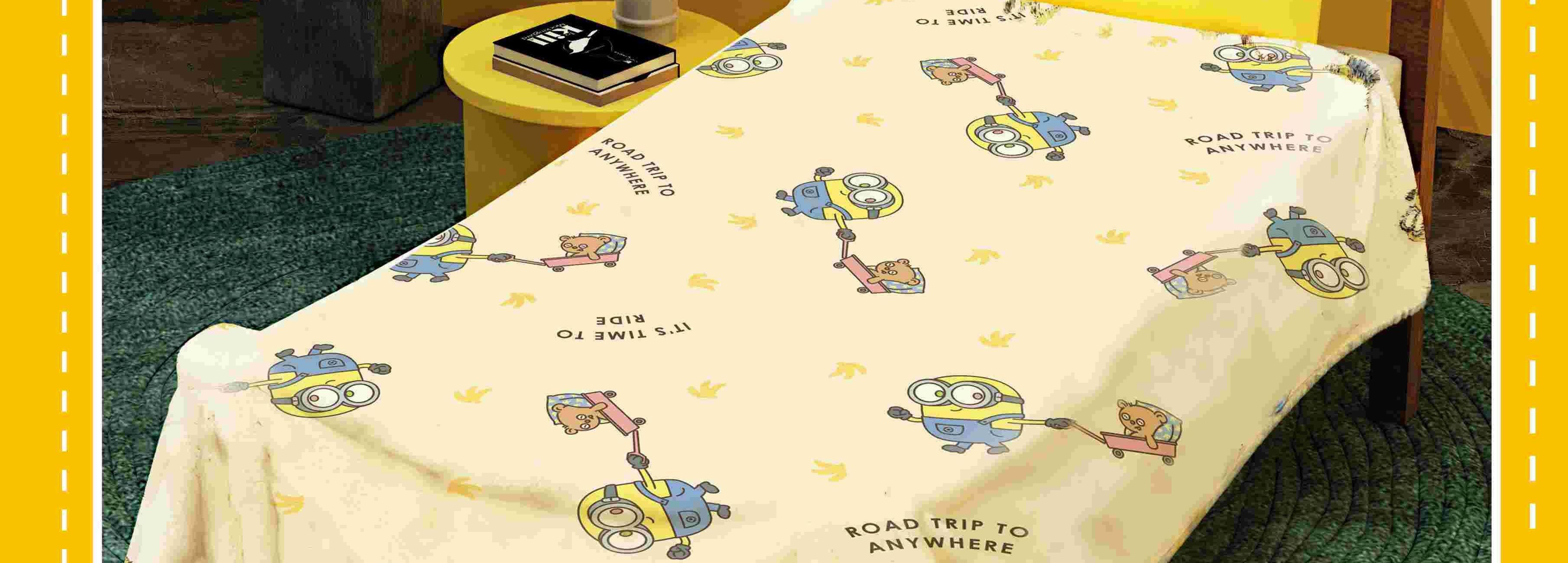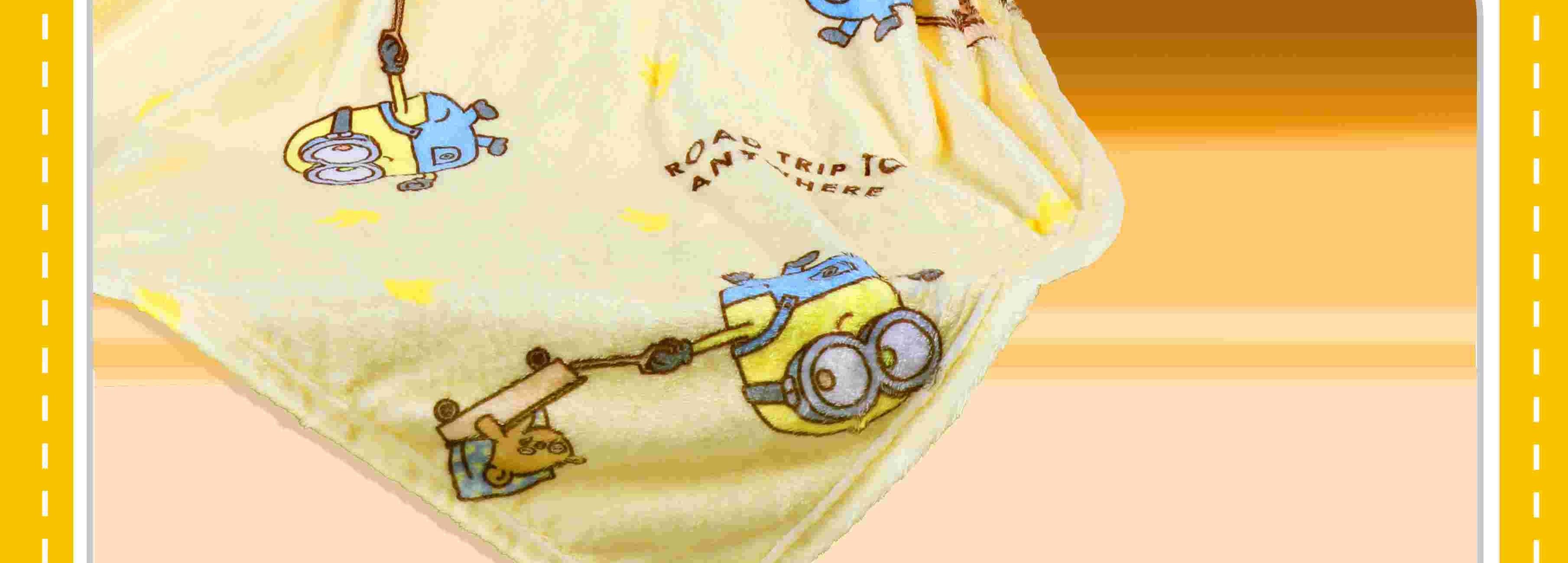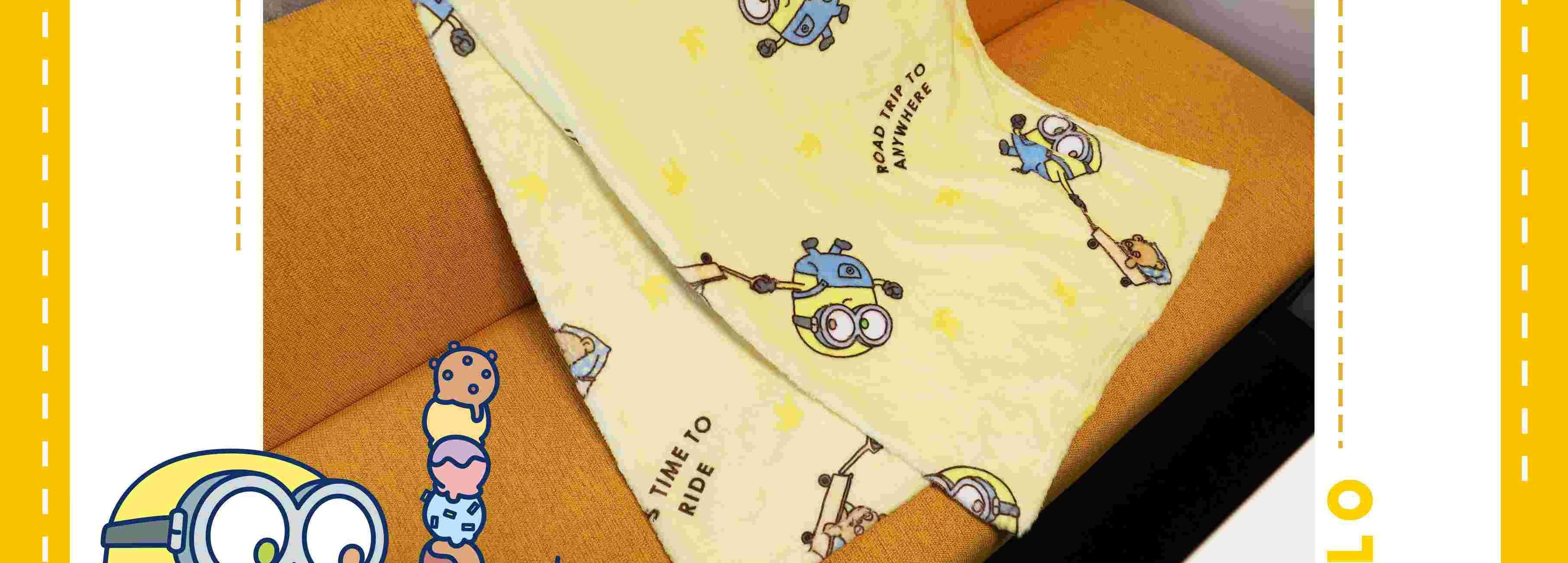配件明细:无纺布袋*1 吊牌*1 规格尺寸:100*140cm 无纺布袋尺寸:350*250*70mm 产品净重:420g 产品毛重:460g 外箱尺寸:72*50*80cm 图案生动可爱,柔软蓬松,不易褪色、变形,让您的居家生活更加轻松便捷,时刻保持优雅与整洁。 采用高品质超柔纤维,触感细腻如绒,保暖性能很高。 萌趣小黄人,舒绒毯里的欢乐派对! 无论是客厅、卧室,还是书房、儿童房,只需轻轻一铺,就能瞬间点亮整个空间,让你的家居环境充满欢乐与活力。 采用精湛的缝制工艺,确保毯子的边缘平整、线迹均匀。