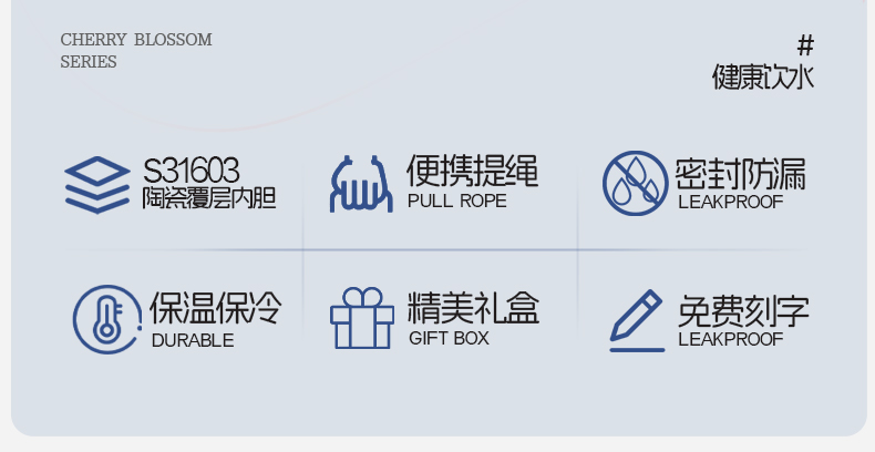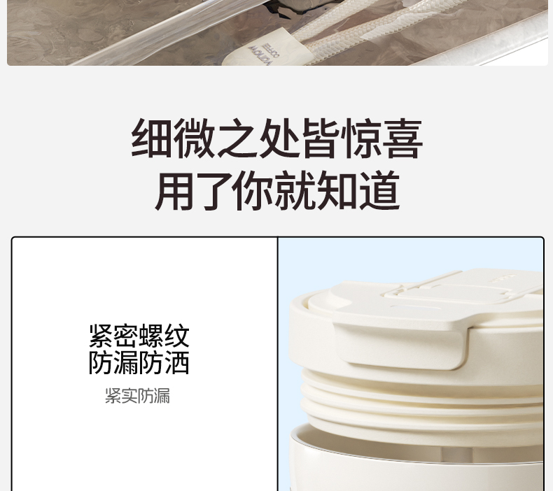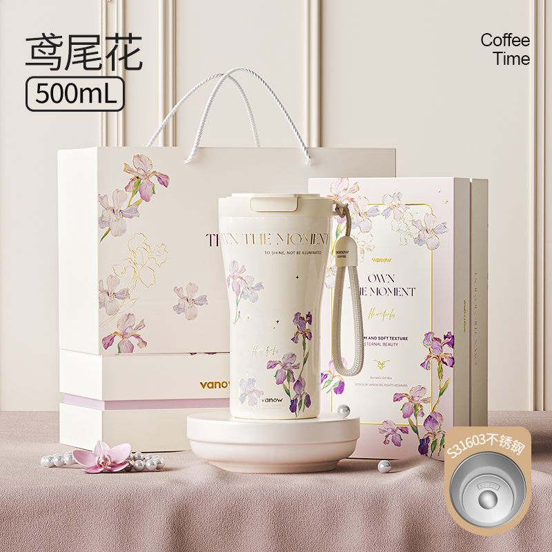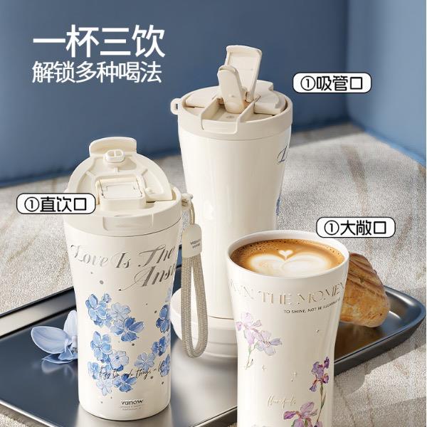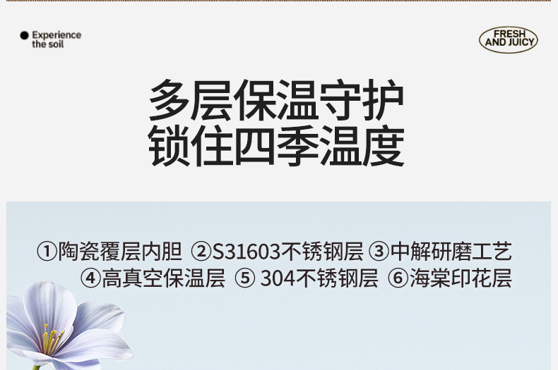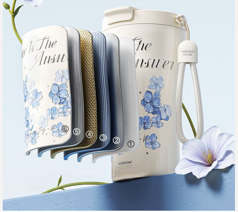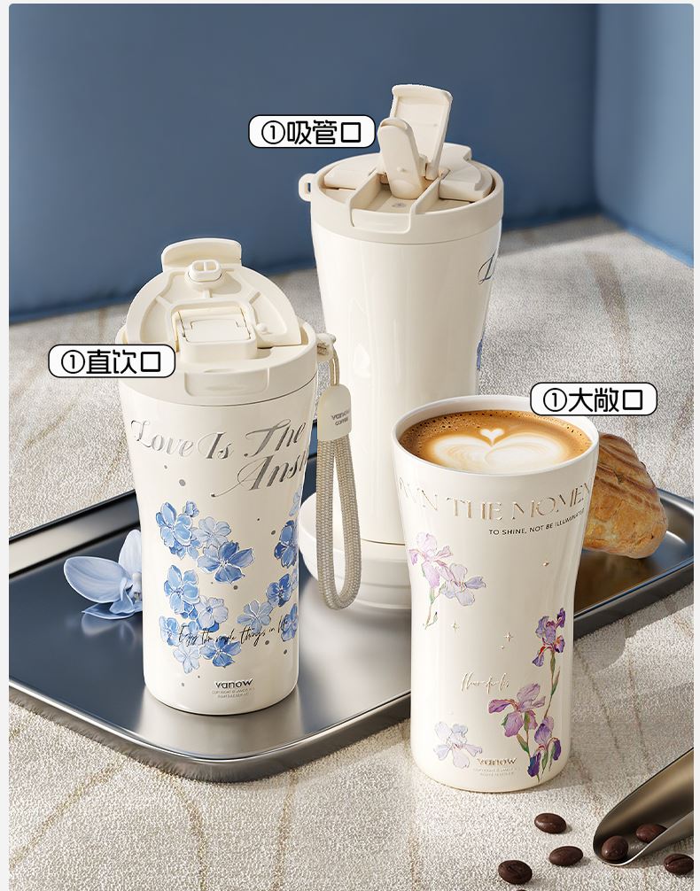 型号:VO-FHT50KF、VO-HT50KF、VO-YW50KF VO-FHT50KF-C、VO-HT50KF-C、VO-YW50KF-C 颜色:粉海棠、海棠花、鸢尾 容量:500ml 材质:326不锈钢/陶瓷、pp聚丙烯、硅橡胶 尺寸:95mm*155mm 1.多层保温守护,锁住四季温度 2.一杯三饮,闲趣自在心 3.优雅弧度,一握倾心 4.一提即走,便携新定义 5.倒置也安心,摆脱湿包烦恼