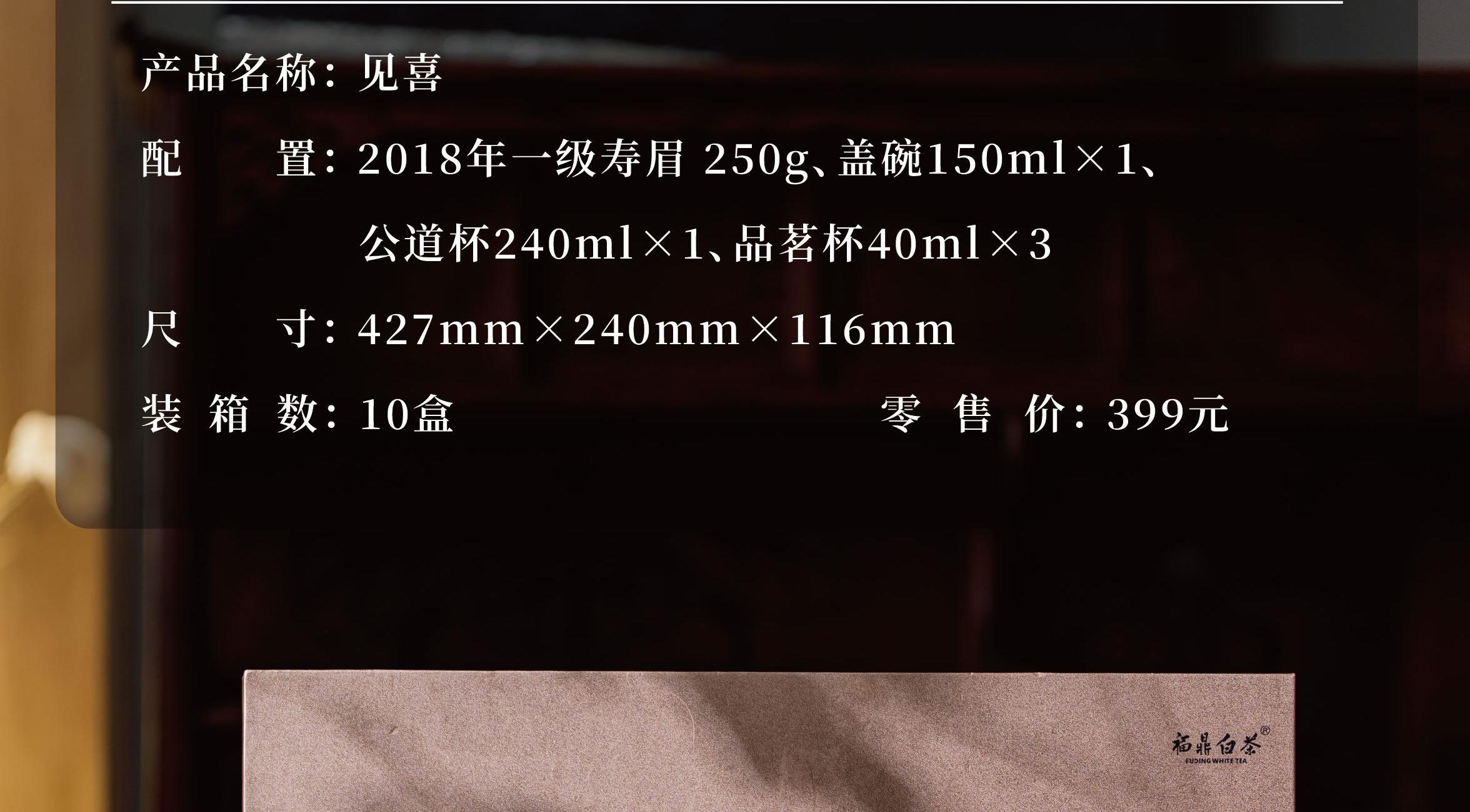 内含2018年福鼎白茶一级寿眉250g,陶瓷盖碗1个,公道杯1个,品茗杯3个。万事见喜。喜上眉梢。有茶有器。礼有心意。礼盒采用玫瑰金熠熠生辉,开盒见东方茶韵。搭配2018年一级寿眉,采用松压工艺,充分的保持了茶叶的完整度。口感醇润甘甜,一份用心的礼物定制。
