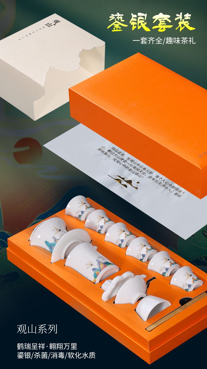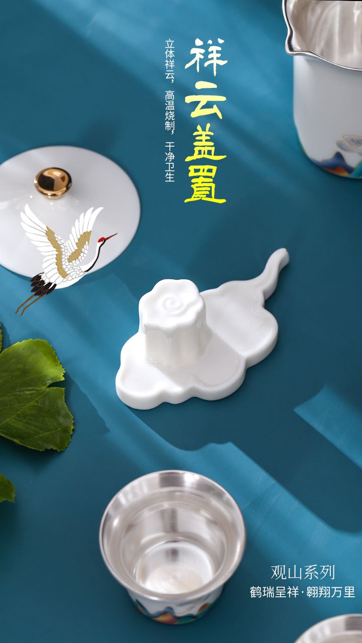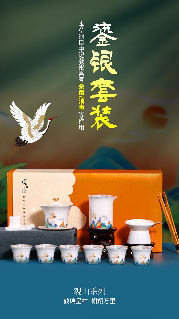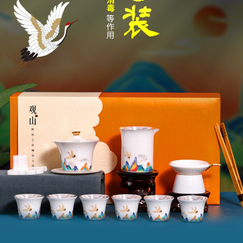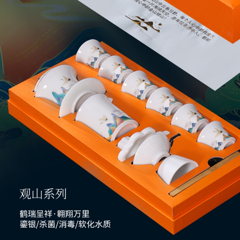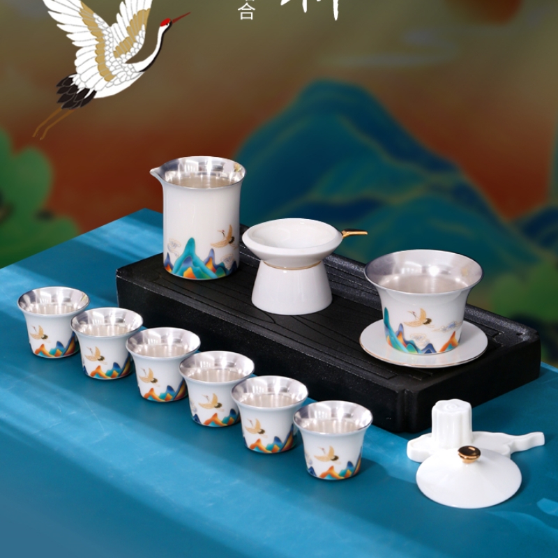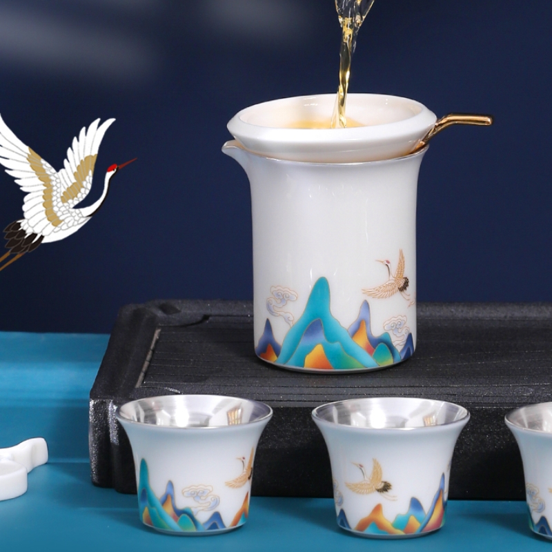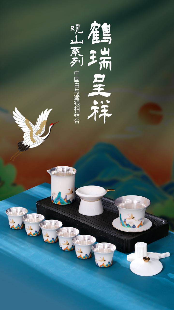知者觉器-鹤瑞呈祥鎏银轻奢陶瓷茶具套装伴手礼品商务定制马年货