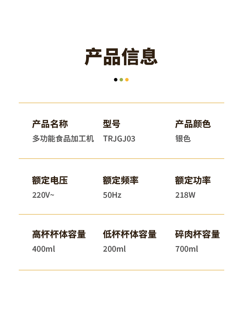 一机多用:集榨汁、绞肉、研磨于一体 强劲动力:轻松处理各类软硬食材 多档调节:灵活调速,控制料理细腻度