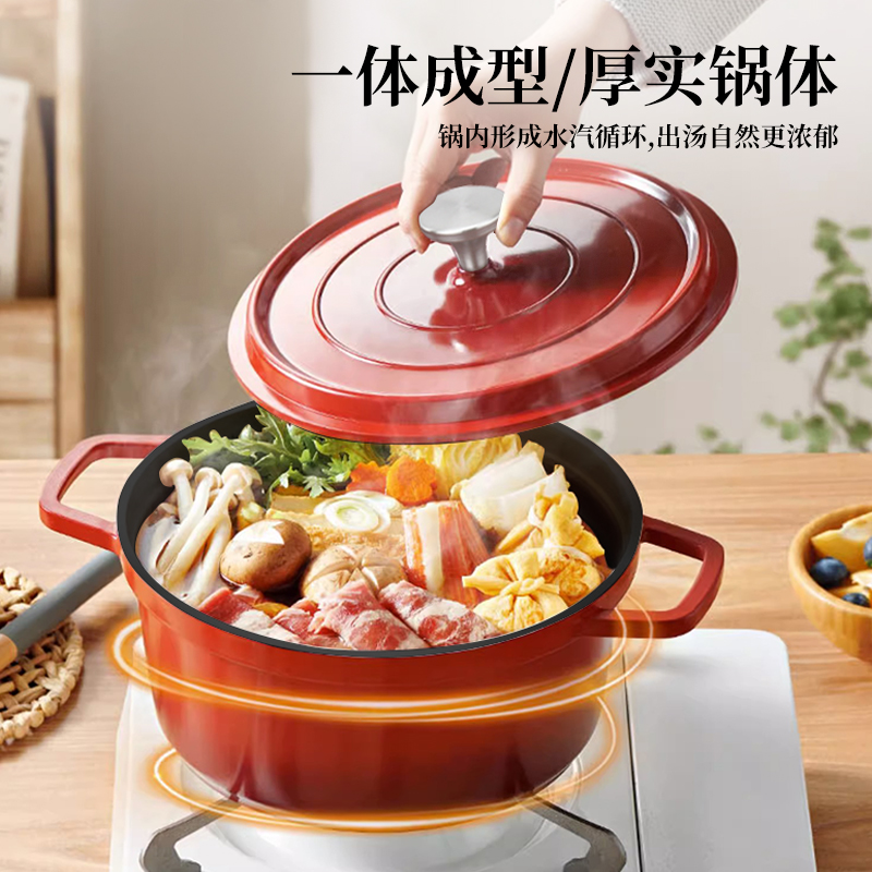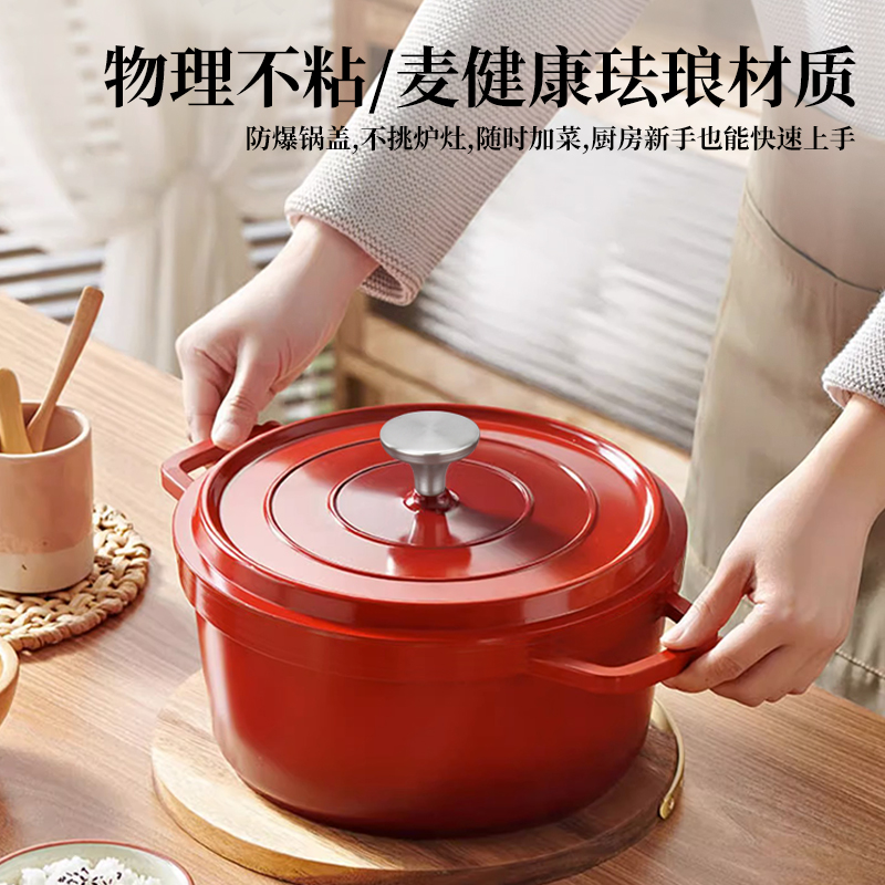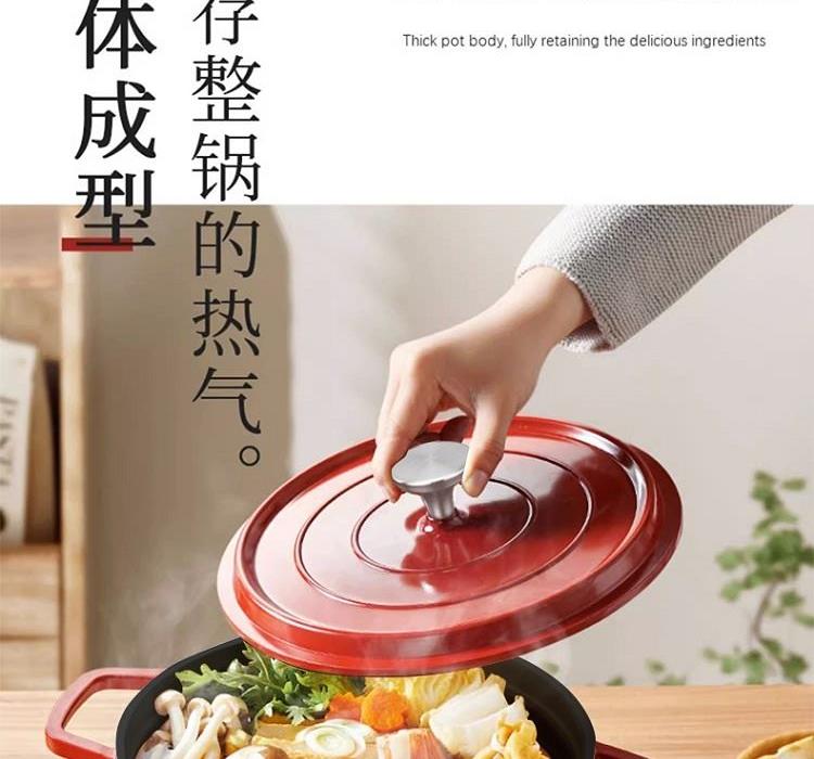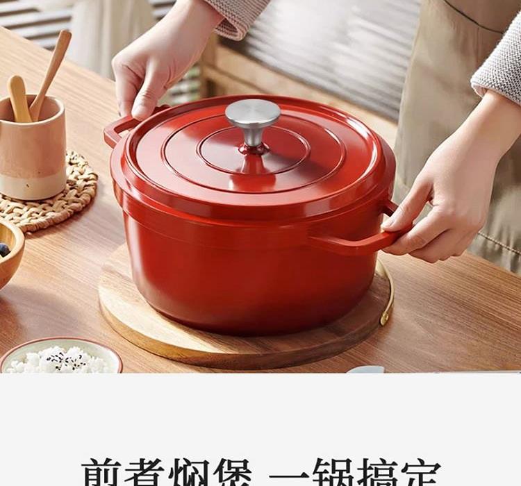 规 格:24cm 材 质:精铁 颜 色:红色 包装尺寸:30*30*16.5cm 精选优质铁基材,锅体采用独特工艺一次模压成型,独特造型优雅大方,尽享时尚烹饪生活;不粘涂层,省油少烟,光洁易亮,耐腐蚀,经久耐用,烹饪味道更可口; 珐琅瓷内壁、光洁表面易于清洗、一冲即净 把手设计、方便拿取、握感舒适
