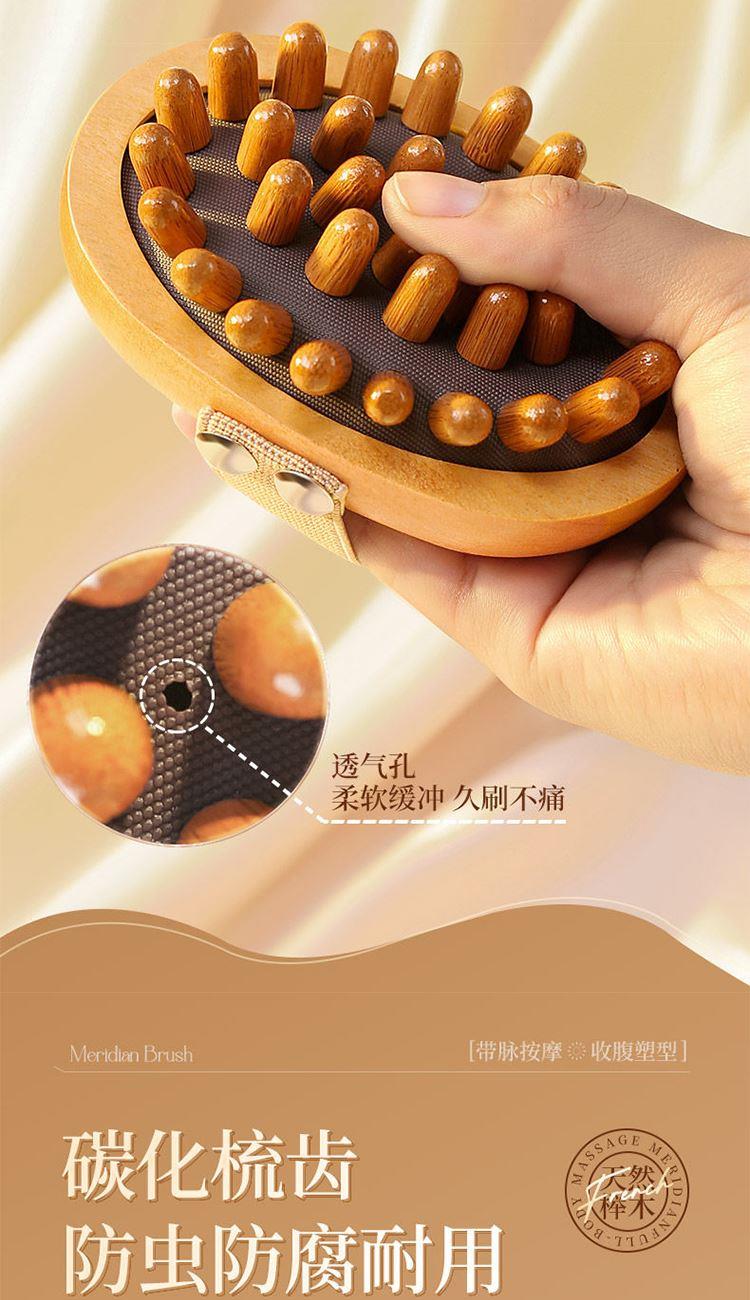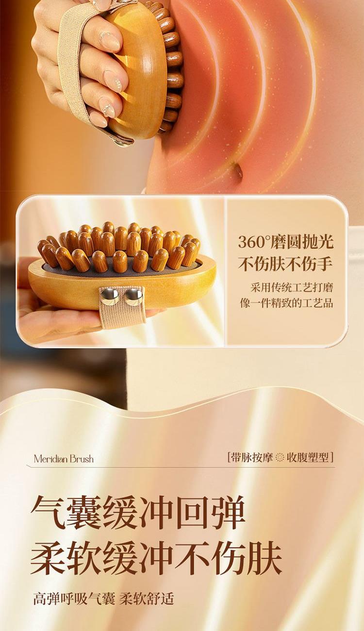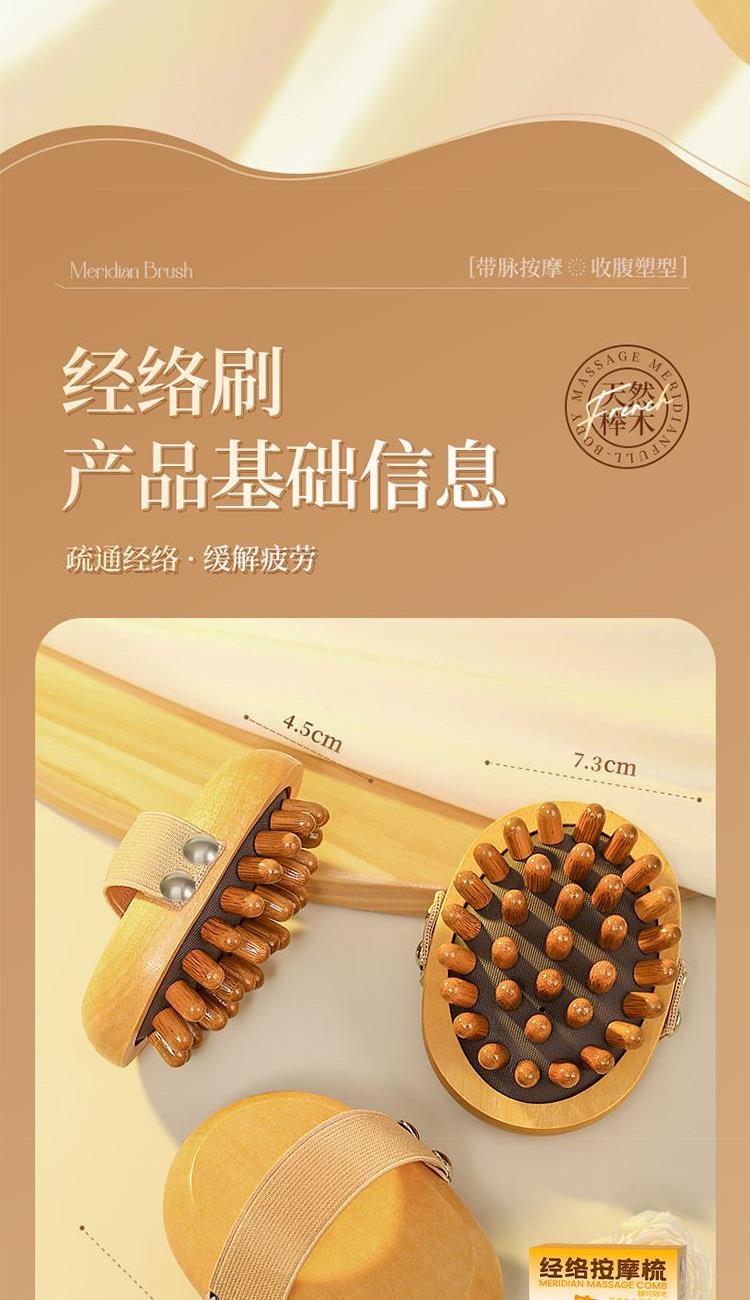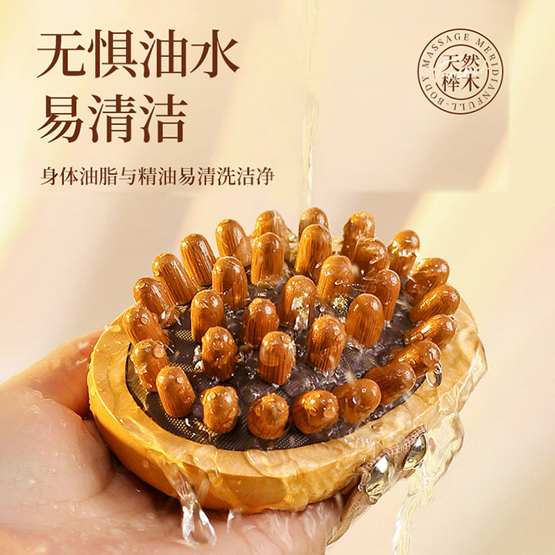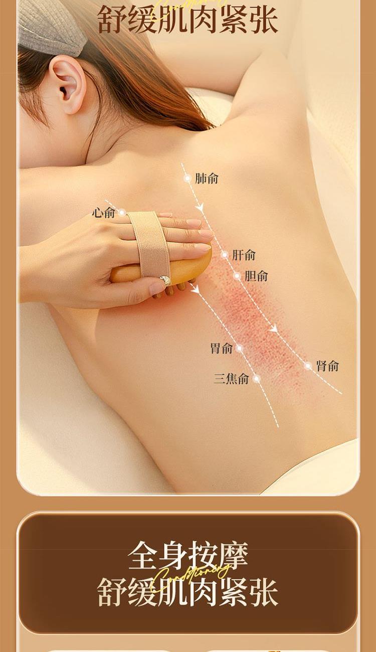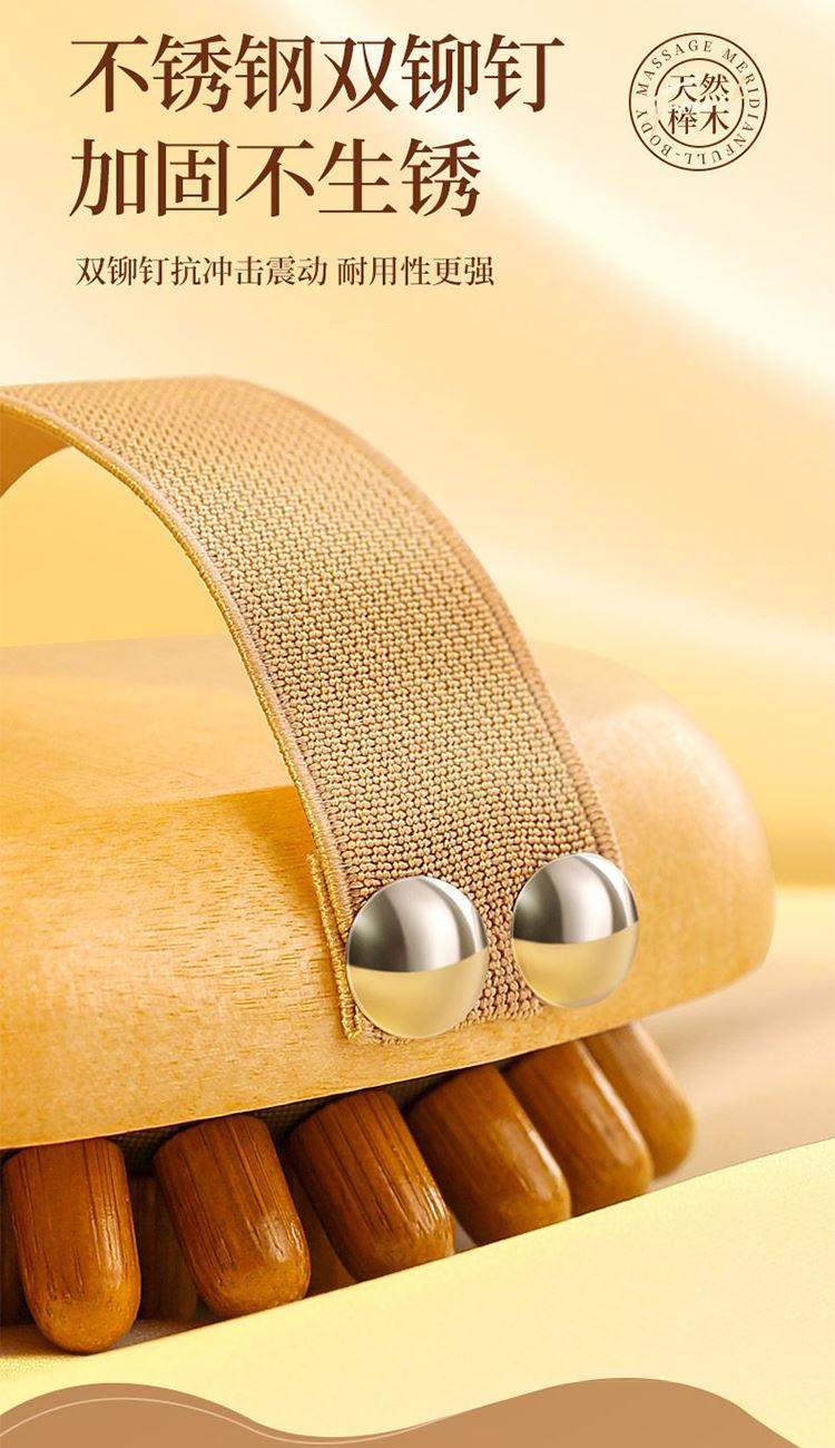 疏通经络:独特梳齿设计,有效刺激穴位,促进气血循环。 触感舒适:弹性气囊缓冲压力,圆润梳齿不刺痛。 符合人体工学:手柄弧形贴合手心,防滑纹理省力易持,搭配加宽弹力手绳防脱落。 耐用材质:优质木质手柄,防滑耐磨,长期使用不易变形。 便携设计:小巧轻便,享受按摩护理。 材质:榉木(主体木材+弹性基底+按摩头)按摩头数量:33 颗