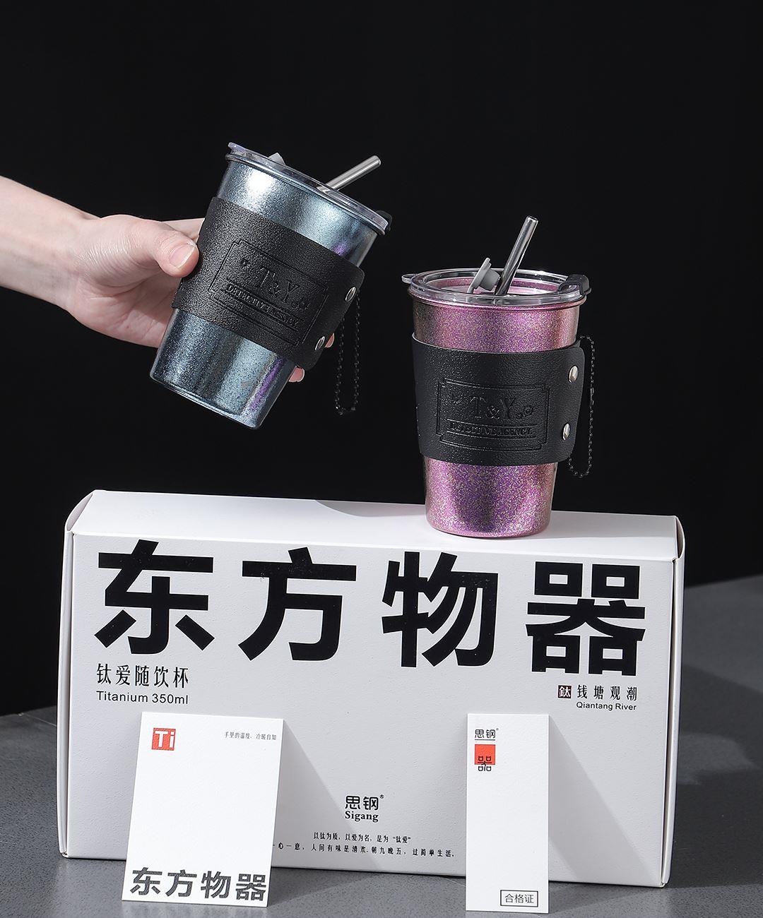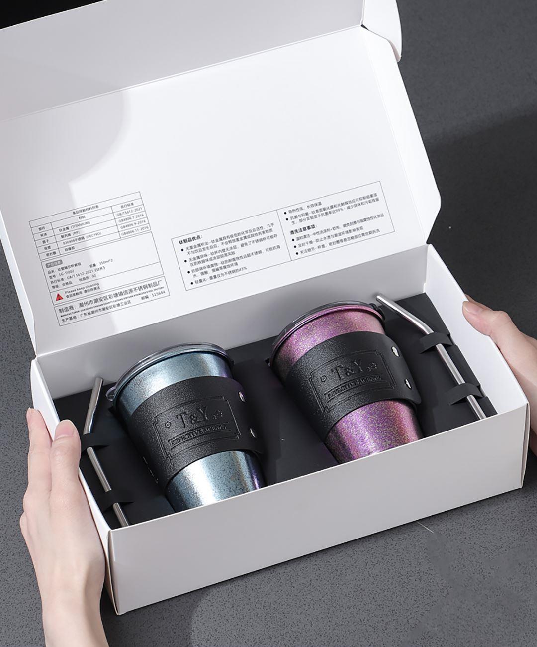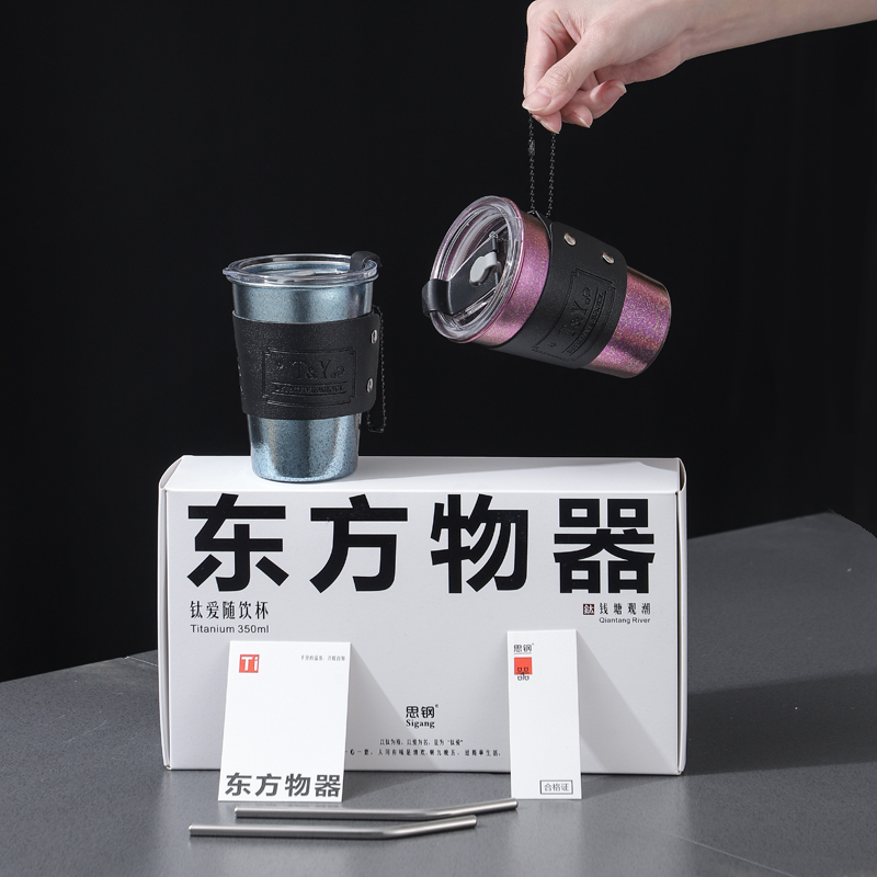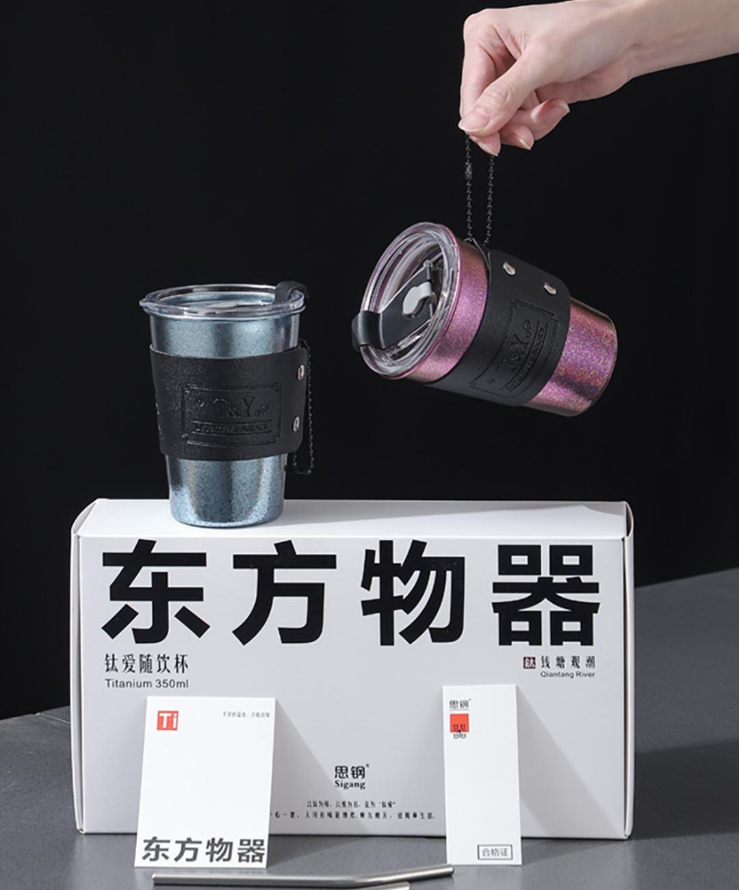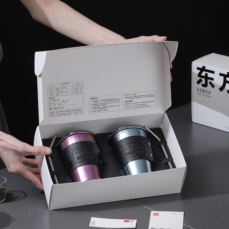 产品型号 :SG-TI002 产品规格 :350ML × 2只 产品材质 :纯钛 彩盒尺寸 :278*153*83MM 好好喝水,健康生活,轻量材身,坚韧轻盈,随身带不累赘。 纯钛材质,持久锁鲜,饮品鲜醇不变质,冷热酸碱随心泡。 冰川蓝+暮光紫,自然着色,让钛金属呈现绚丽宝石色彩。 轻巧便携,就要人手一个随行杯,出行带上它,享受健康生活。 双杯礼盒,盛装每一段相伴,钛有仪式感,送人自用都钛有面儿。