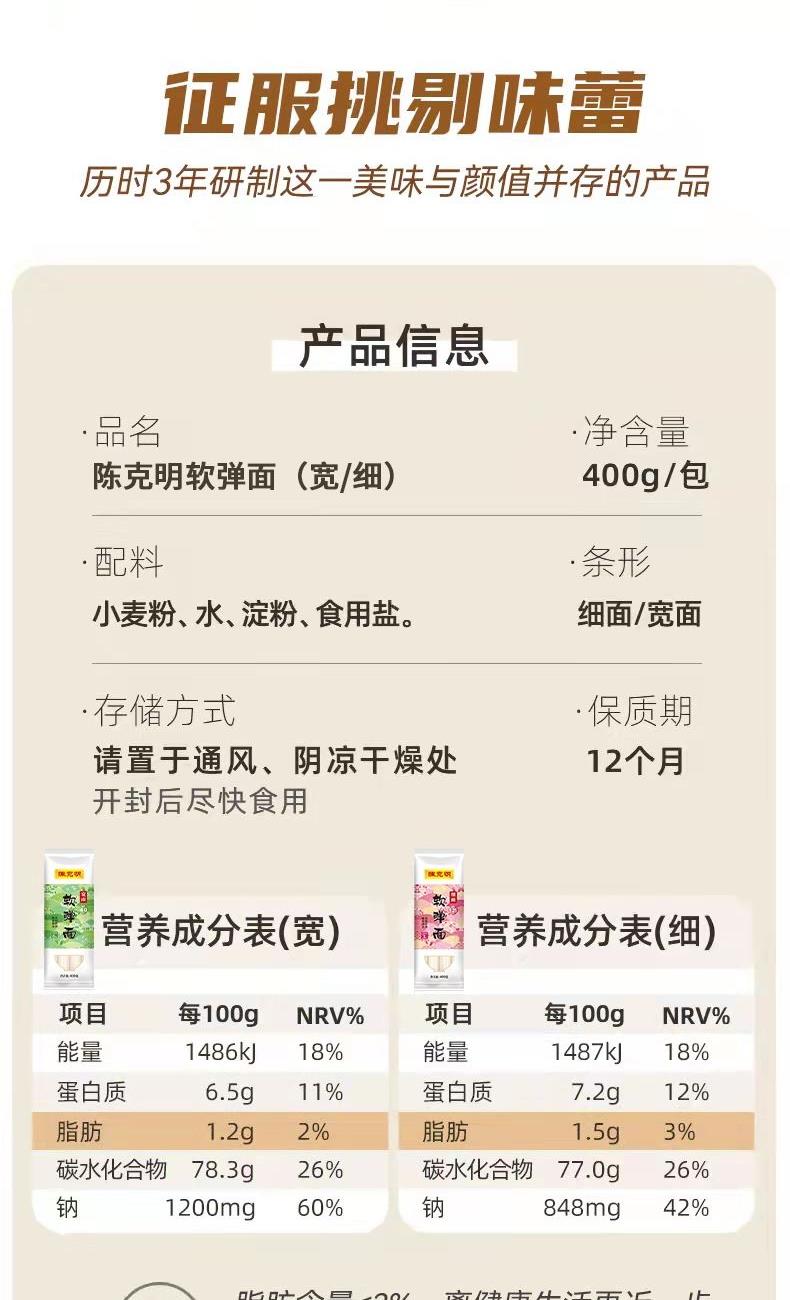陈克明华夏软弹面(细面)400g*1(宽面)400g*1