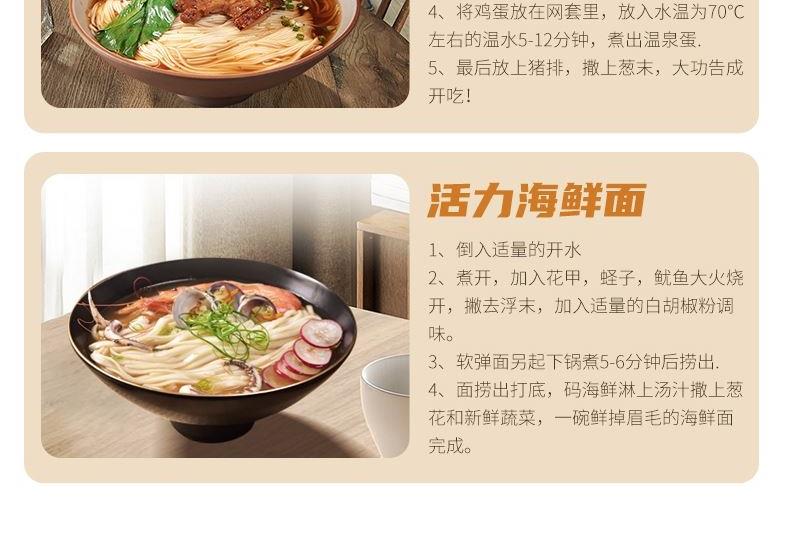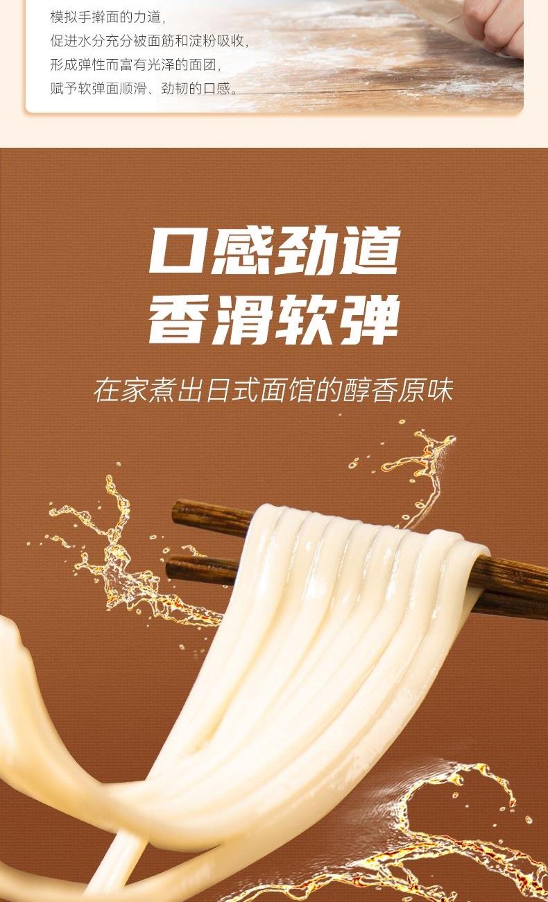 产品规格: 细面400g*1包 宽面400g*1包 1、42%高加水:口感更爽滑软弹 2、360°真空揉:更筋道耐煮 3、35℃仿日晒:面条品质更稳定 4、宽细搭配条形,面身圆润顺滑, 咀嚼口感软糯Q弹