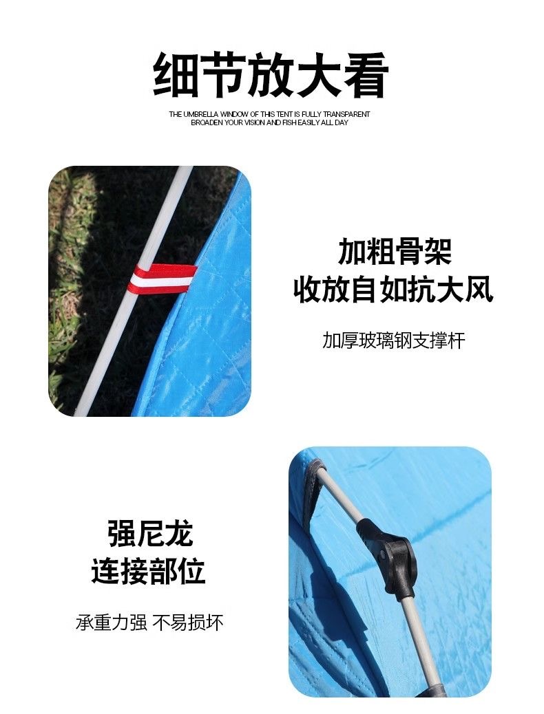 布料:三层夹棉防水牛津布 骨架:玻璃钢 颜色:蓝