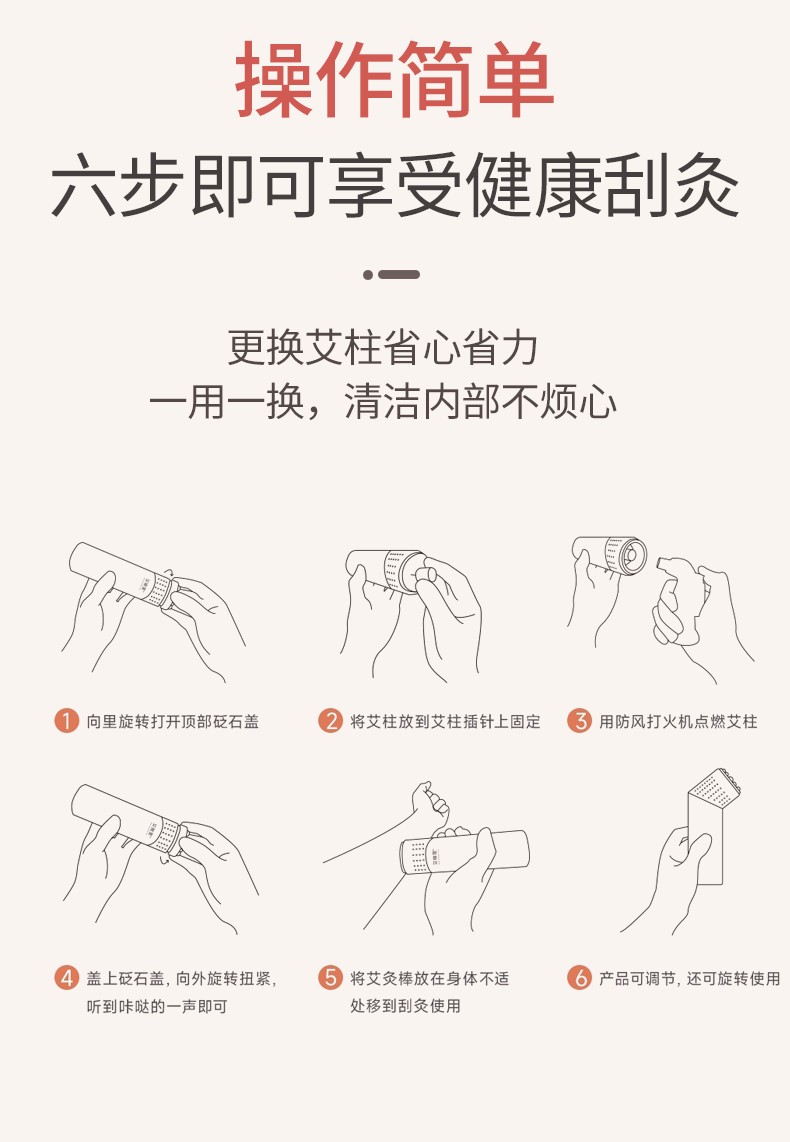 3:品质保障:三年陈艾绒渗透力强,滤烟防烫;砭石刮痧出痧快,艾灸温养稳