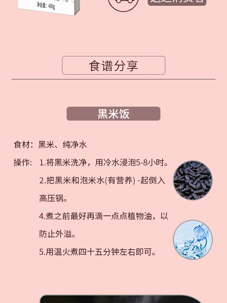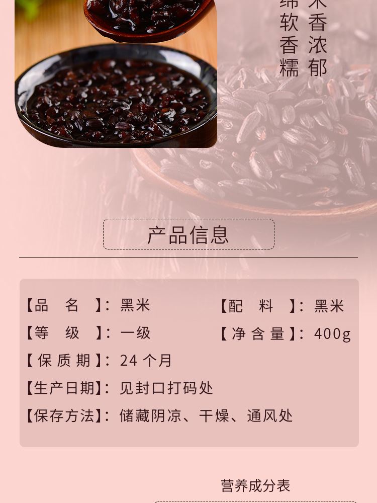 注:该产品二盒起发! 配料:黑米 净含量:400g 等级:一级 保质期:24个月