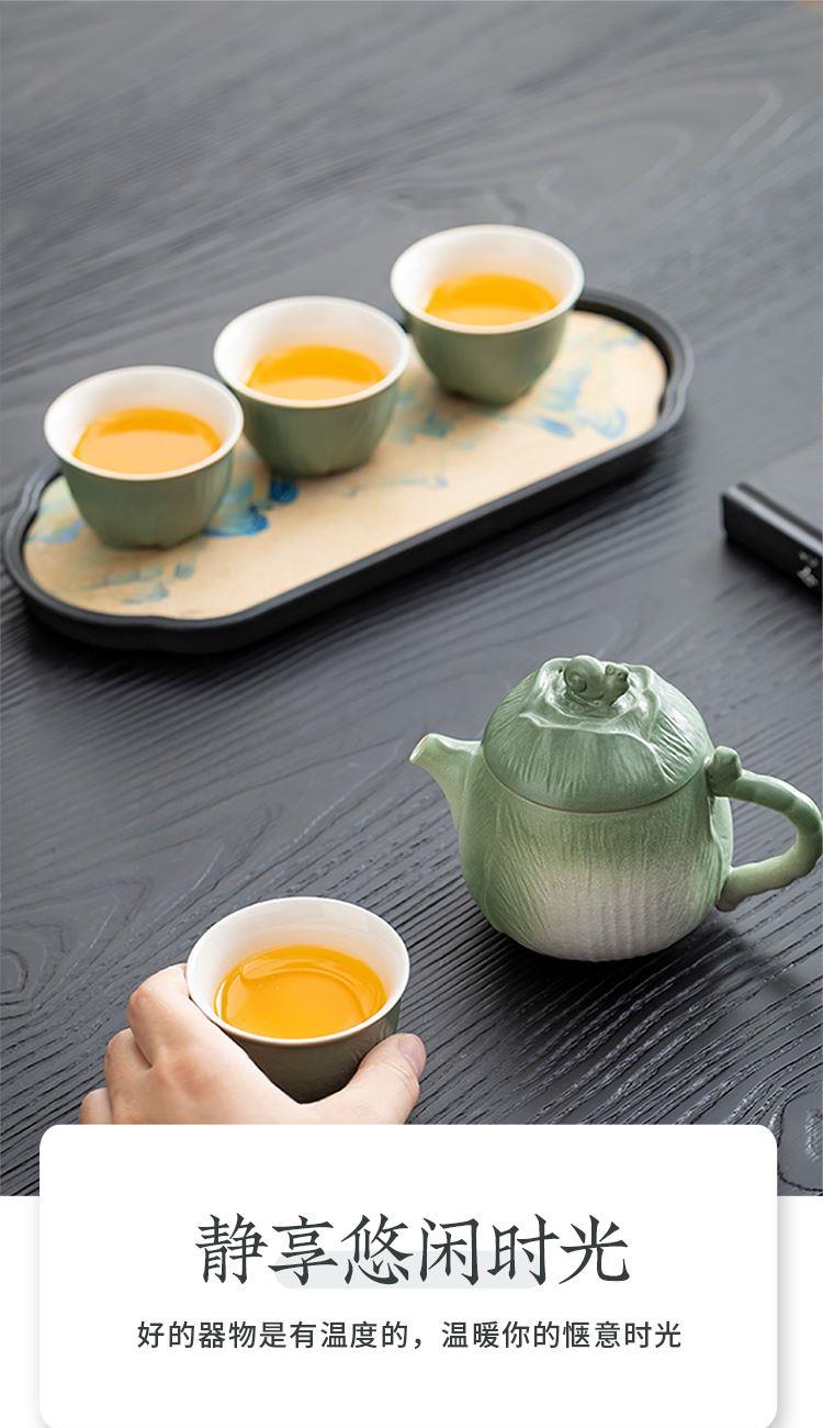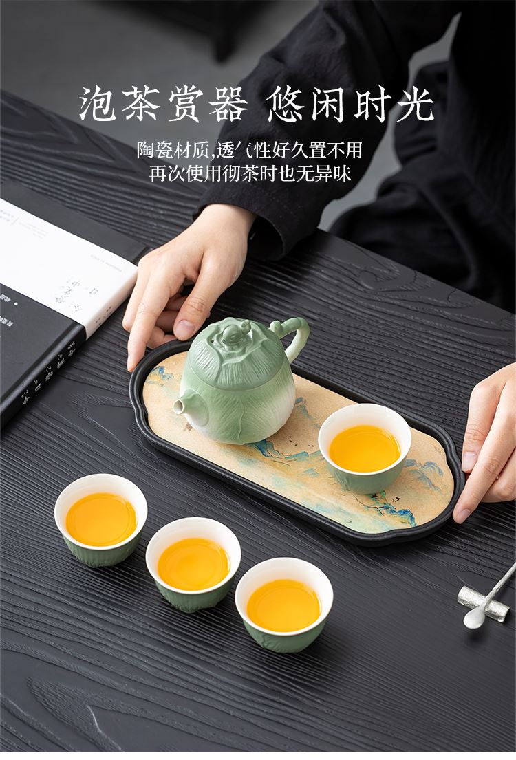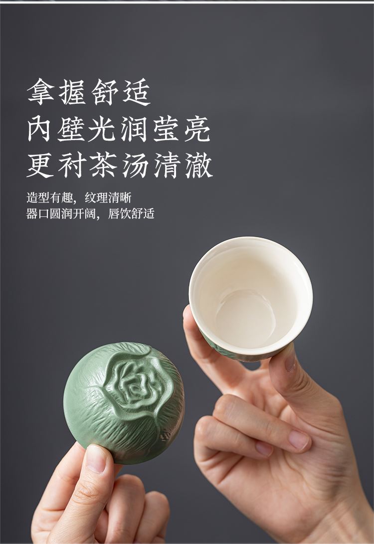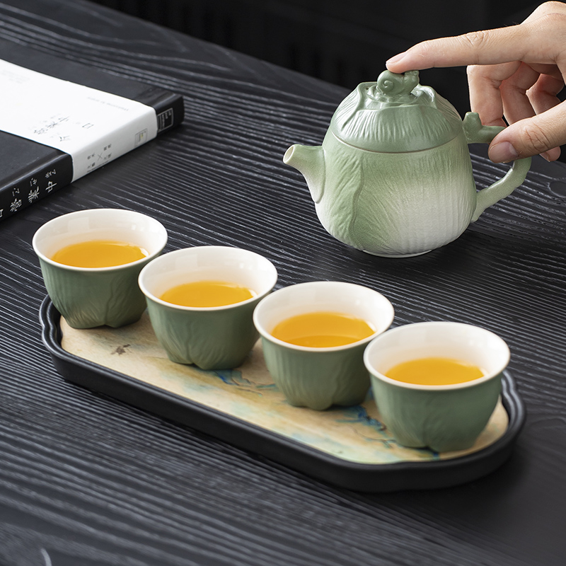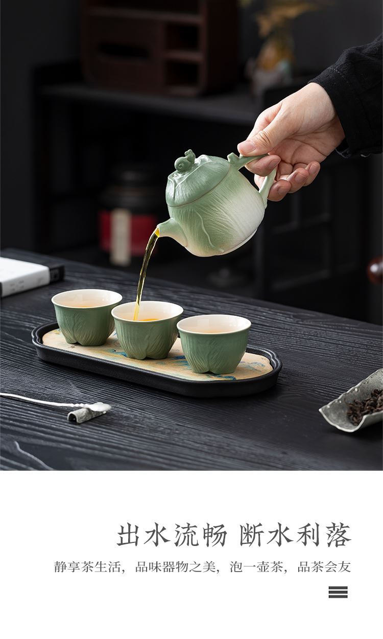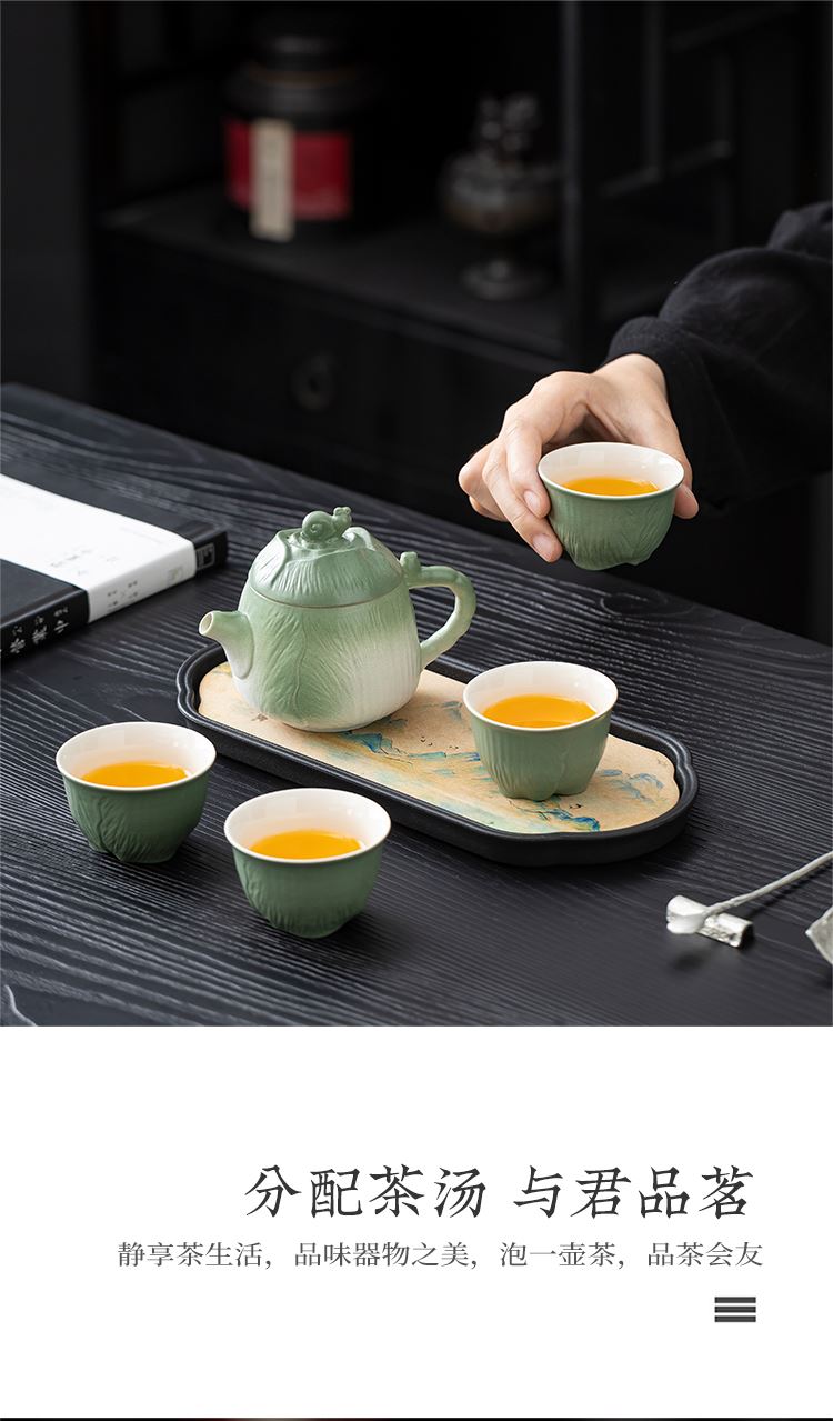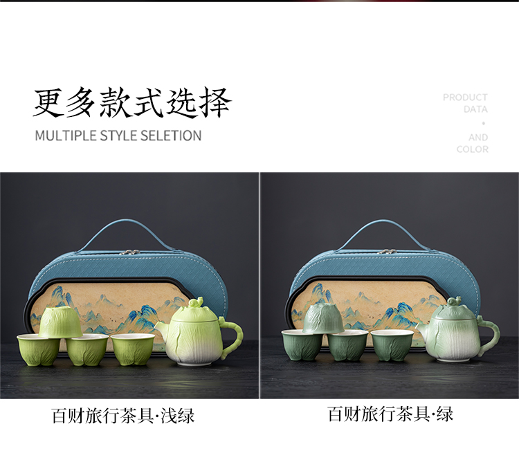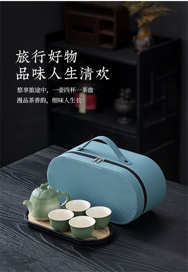 云博陶瓷大白菜粗陶一壶四杯旅行皮盒带千里江山茶盘户外茶具