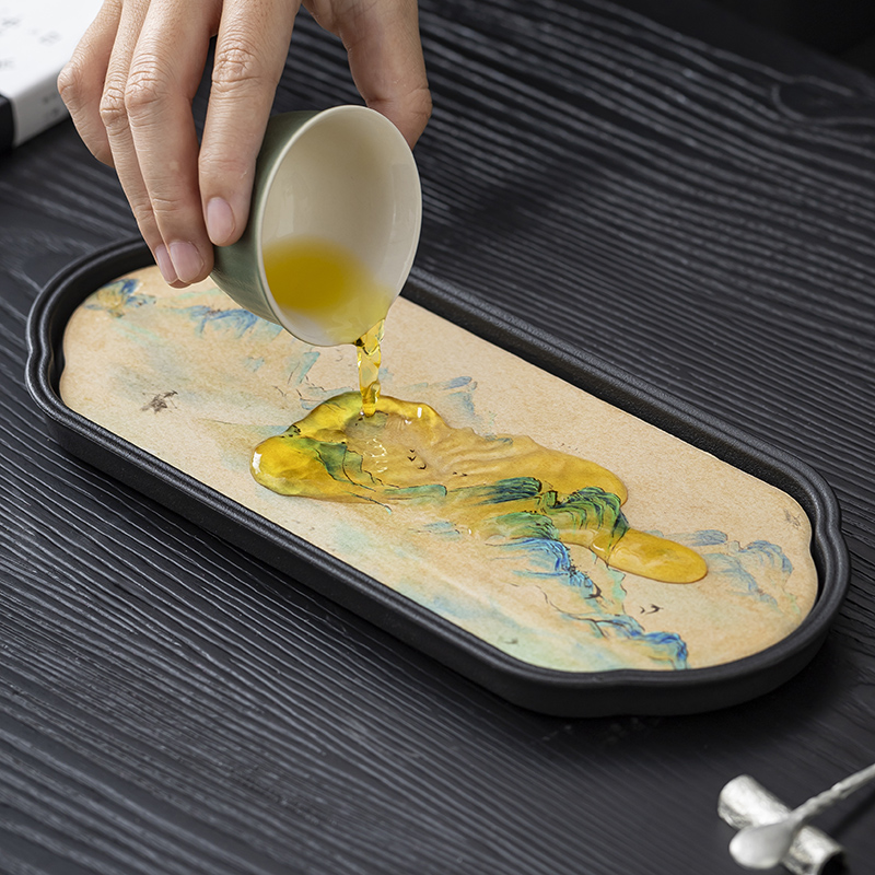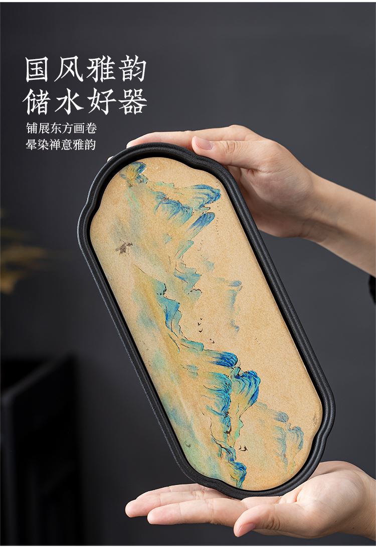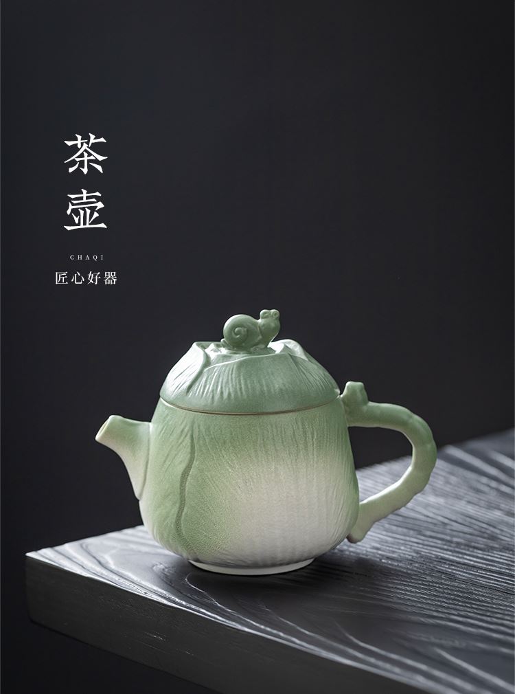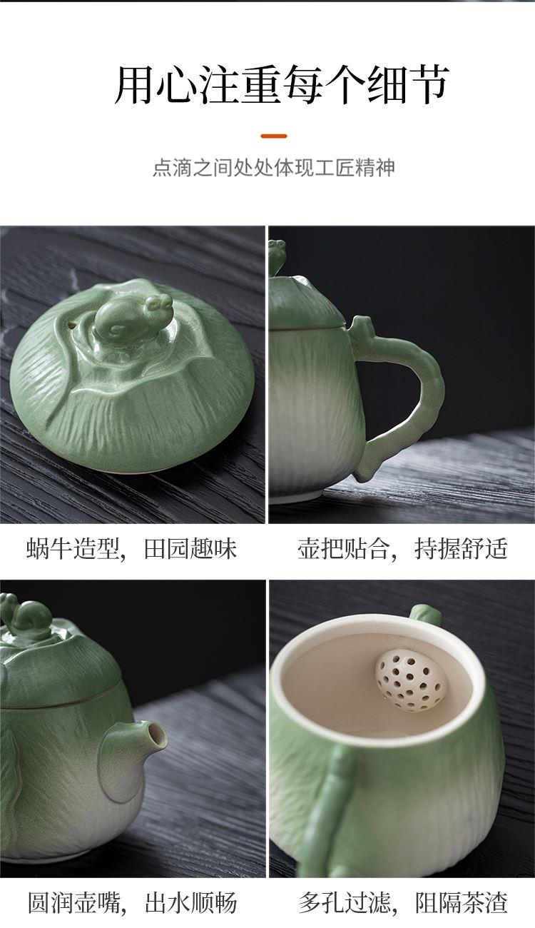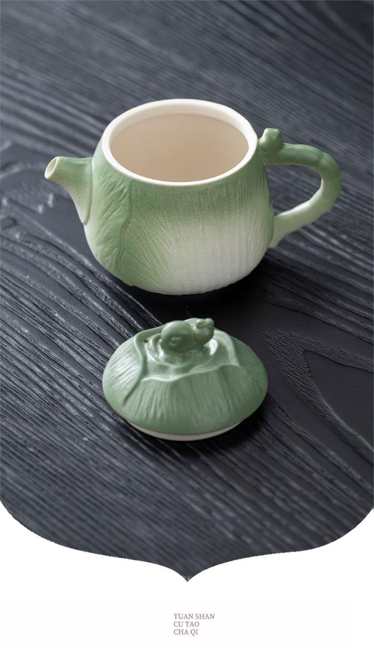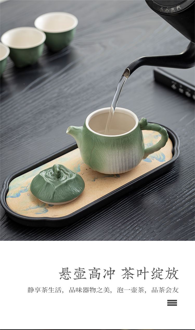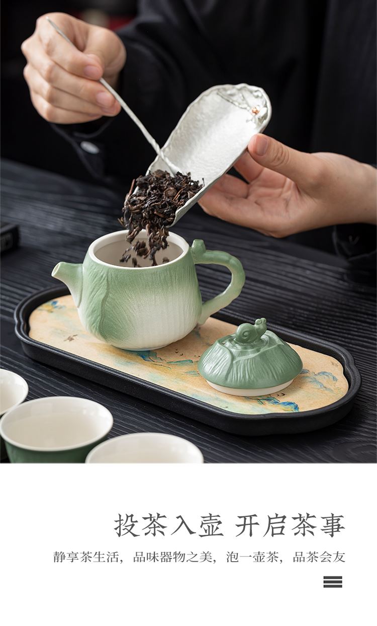 云博陶瓷大白菜粗陶一壶四杯旅行皮盒带千里江山茶盘户外茶具