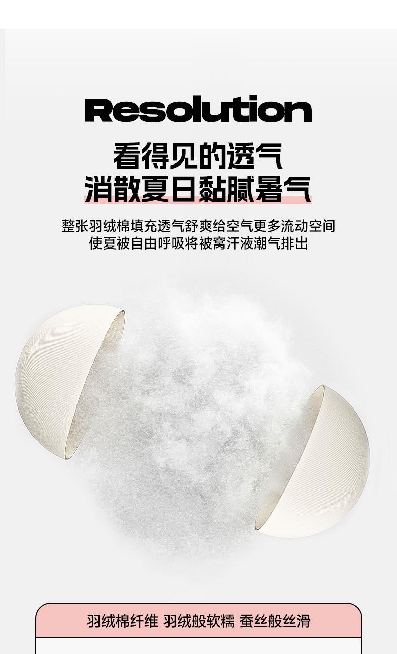规格:200*230cm 面料:泡泡纱 填充:羽丝棉 克重:1400g 执行标准:GB/T22796-2021 安全类别:GB18401-2010 B类 1.甄选优质泡泡纱面料,纤维柔软蓬松,手感柔软,拉力强度高,织物贴身舒适; 2.填充物选用优质A类整张羽丝棉纤维手感犹如羽绒般,轻盈蓬松,柔软舒适 3.采用单边暗合缝制,定点绗缝工艺,日式简约设计风格,简约时尚,让您感受科技生态睡眠!