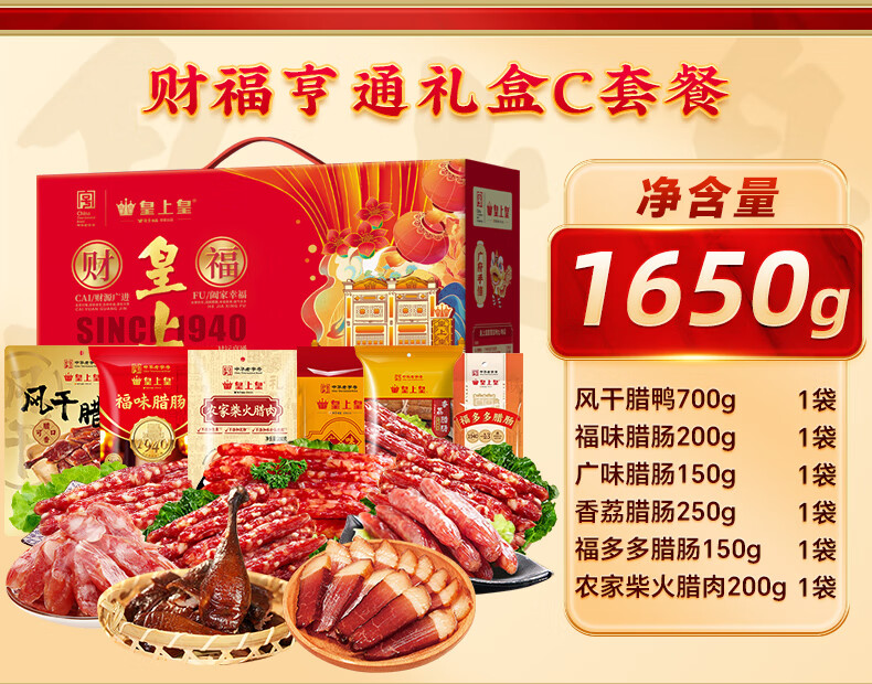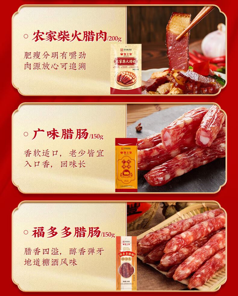 风干腊鸭700g*1 福味腊肠200g*1 广味腊肠150g*1 福多多腊肠150g*1 农家柴火腊肉200g*1 香荔腊肠250g*1