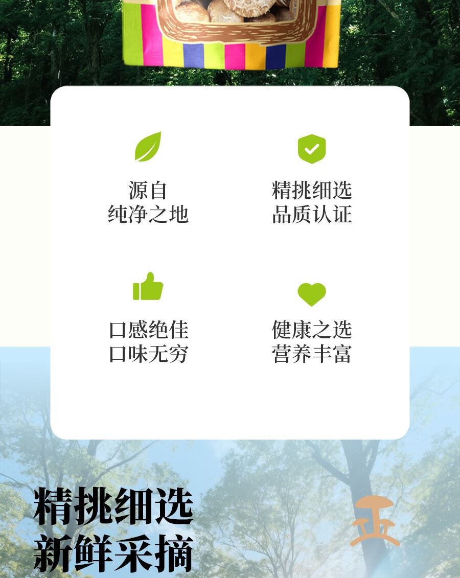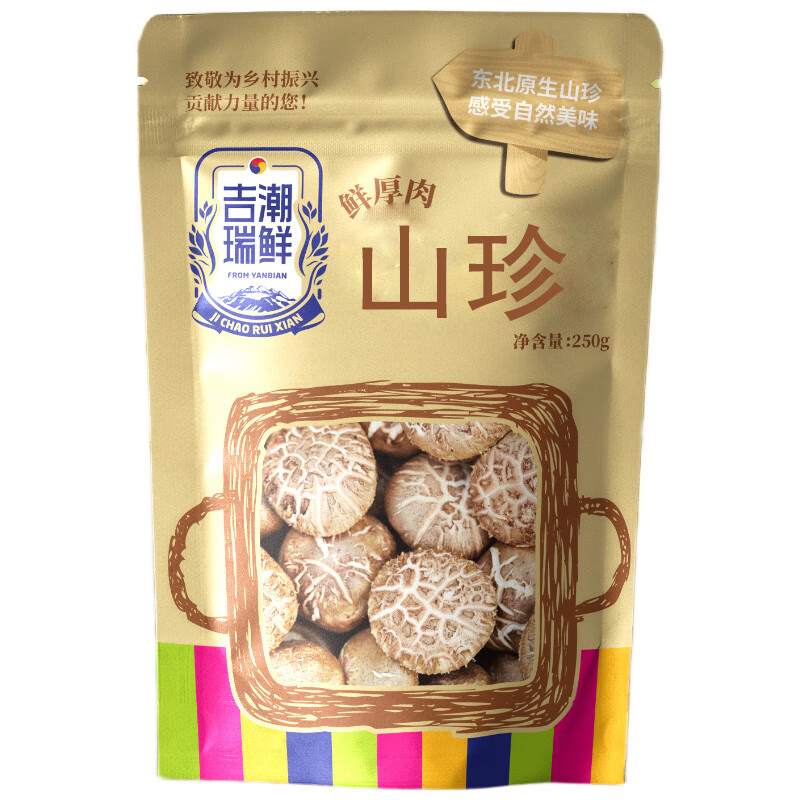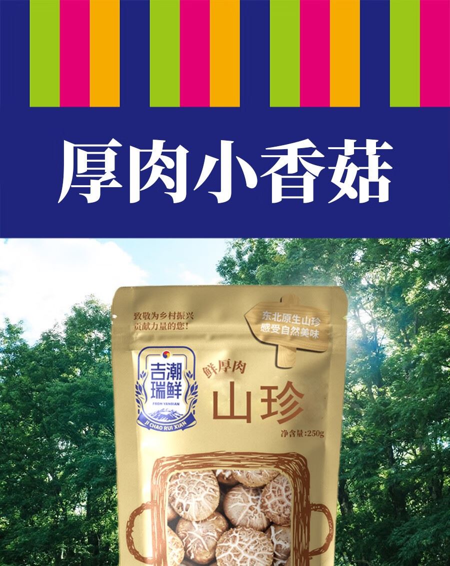 吉潮瑞鲜厚肉小香菇250G*1袋 配料:香菇 厚肉小香菇产地:吉林省汪清县 类型:干制食用菌制品保质期:12个月 净含量:250g 贮存方法:请置冷冻保存