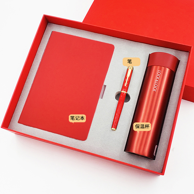 礼盒配置: 1、型号:LHC4019 400ML LOCK&LOCK 保温杯 2、A5搭扣硬皮PU皮笔记本 3、金属烤漆签字笔 4、颜色:红色 5、红色包装盒尺寸:328x263x75mm 6、红色手提袋尺寸:335x293x85mm 7、重量:约27kg/箱
