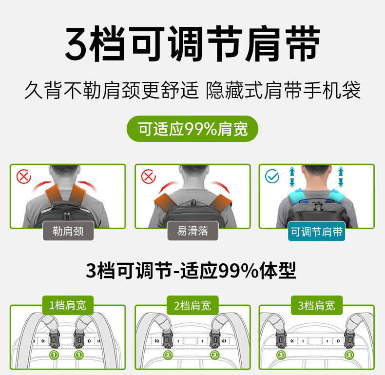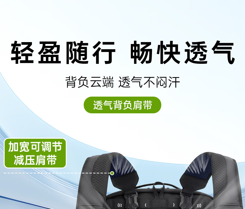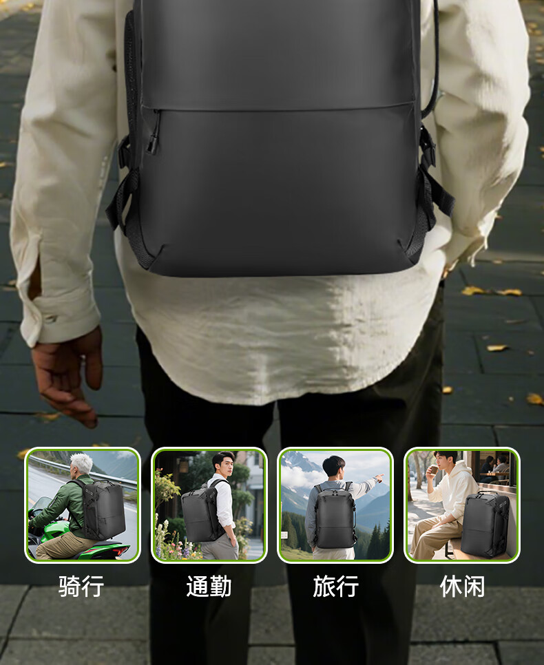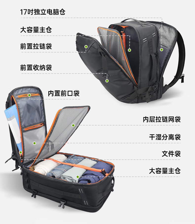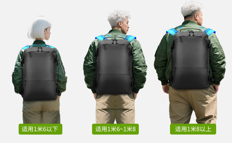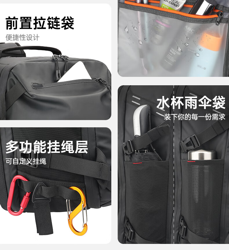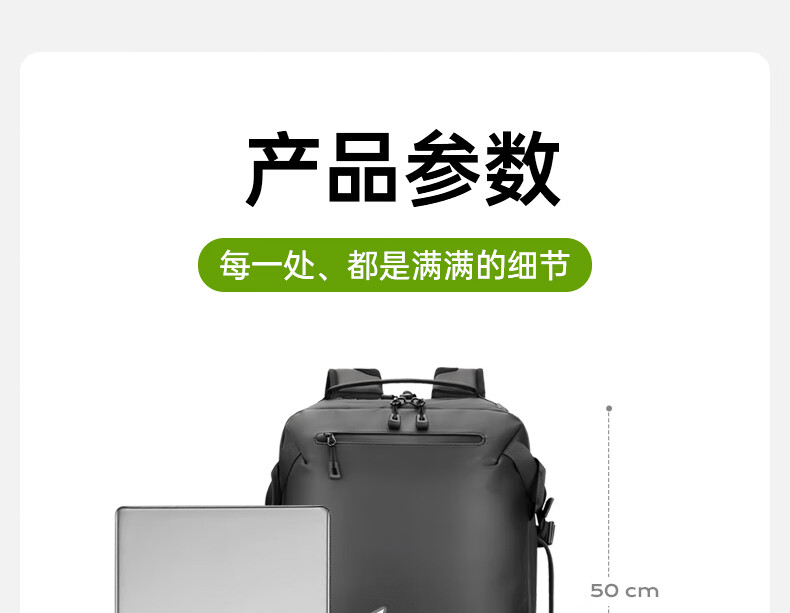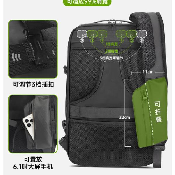 型号:82508京东自营款 尺寸: 31 x 24 x51cm 重量:1.1KG 材质: 涤纶织物 1.多功能商务款,百变随行,2025年京东自营新款. 2.内置17寸电脑隔层,干湿分离收纳仓,文具收纳组,大容量衣物主袋,两侧水杯雨伞袋,背部防盗袋,顶部防划伤绒布袋 3.采用双层提花面料+防水层,经久耐用。 4.外层采用防水拉链,防水,更提升整包品质 。 5.加厚背板,加宽加厚肩带设计,增加受力面积,背负更舒适. 6.肩带上部三档位置调节,下部织带随意调节,带肩带固定扣.肩带隐藏式