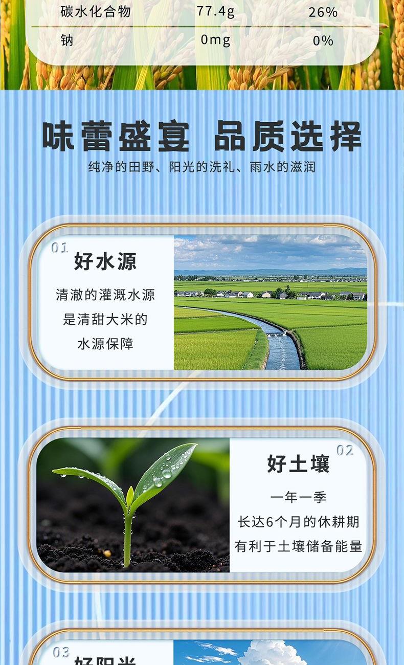 选用优质原料,严格把控产品质量 每一粒大米都晶莹饱满,质地坚硬,色泽洁白剔透。 饭粒油亮,软糯弹牙,醇香四溢。让你回味无穷。