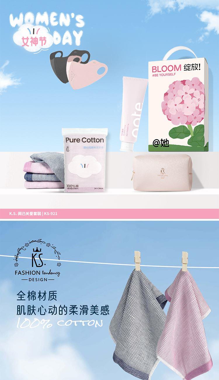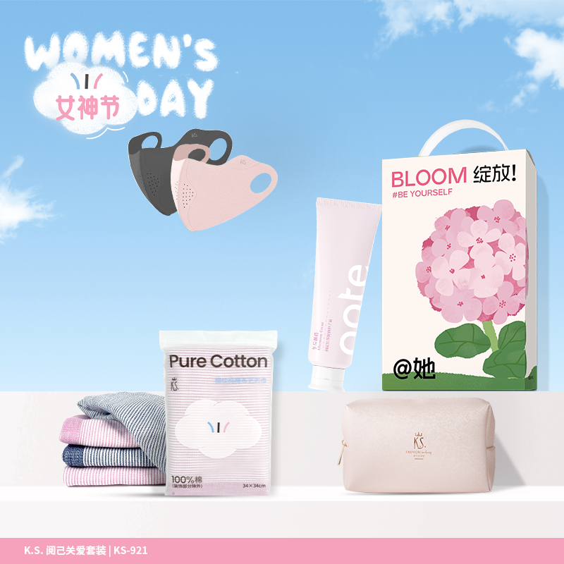 礼盒以阅己为主题,经典温柔粉蓝配色,花体英文点缀,传递女性力量。性价比高,更适合员工福利、活动营销等。 礼盒包含防晒口罩;条纹方巾;柏缇护手霜;化妆包。 礼盒、内容物件上均可实现中小批量成品订制,全套订制方案输出,为企业宣传添砖助力。 运动口罩/锦纶+氨纶(装饰物除外) 收纳包/十字纹皮料+涤纶里料 方巾/99.99%棉(断档部分除外)
