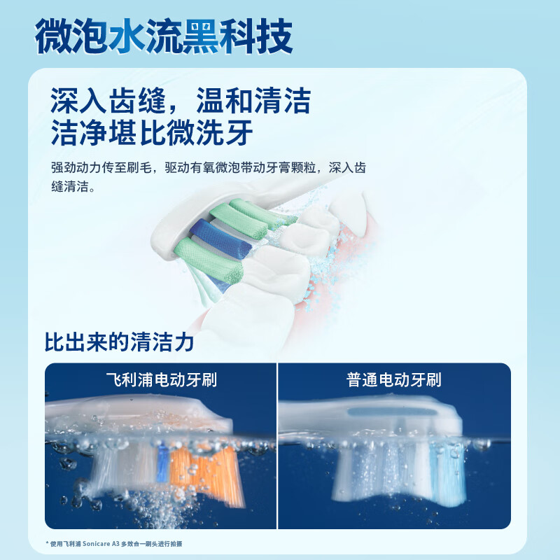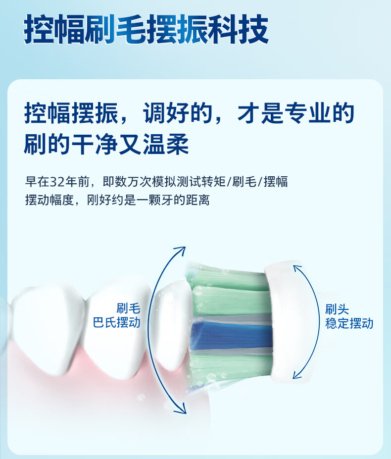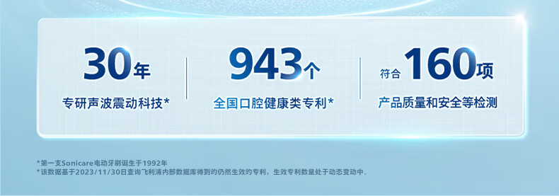 全新Powerclean动力系统有效去除5倍牙菌斑 31000次/分钟强劲护龈振频 可视化压感灯环搭配自动降速 无惧力度过猛 刷头标配2支 0.08秒快速降速 控压 不伤牙龈 五大模式清洁,亮白,护龈,专业亮白,抛光适应不同场景需求 2分钟计时提醒30秒换区指引 续航长达60天 无线充电底座 无接触更安心IPX7级防水 无惧冲洗