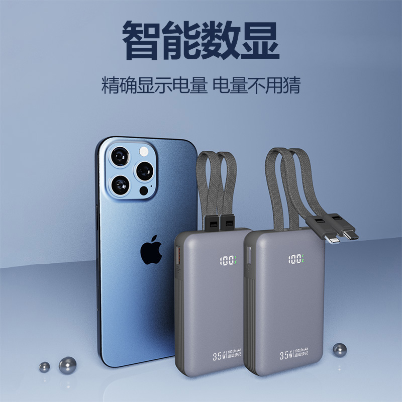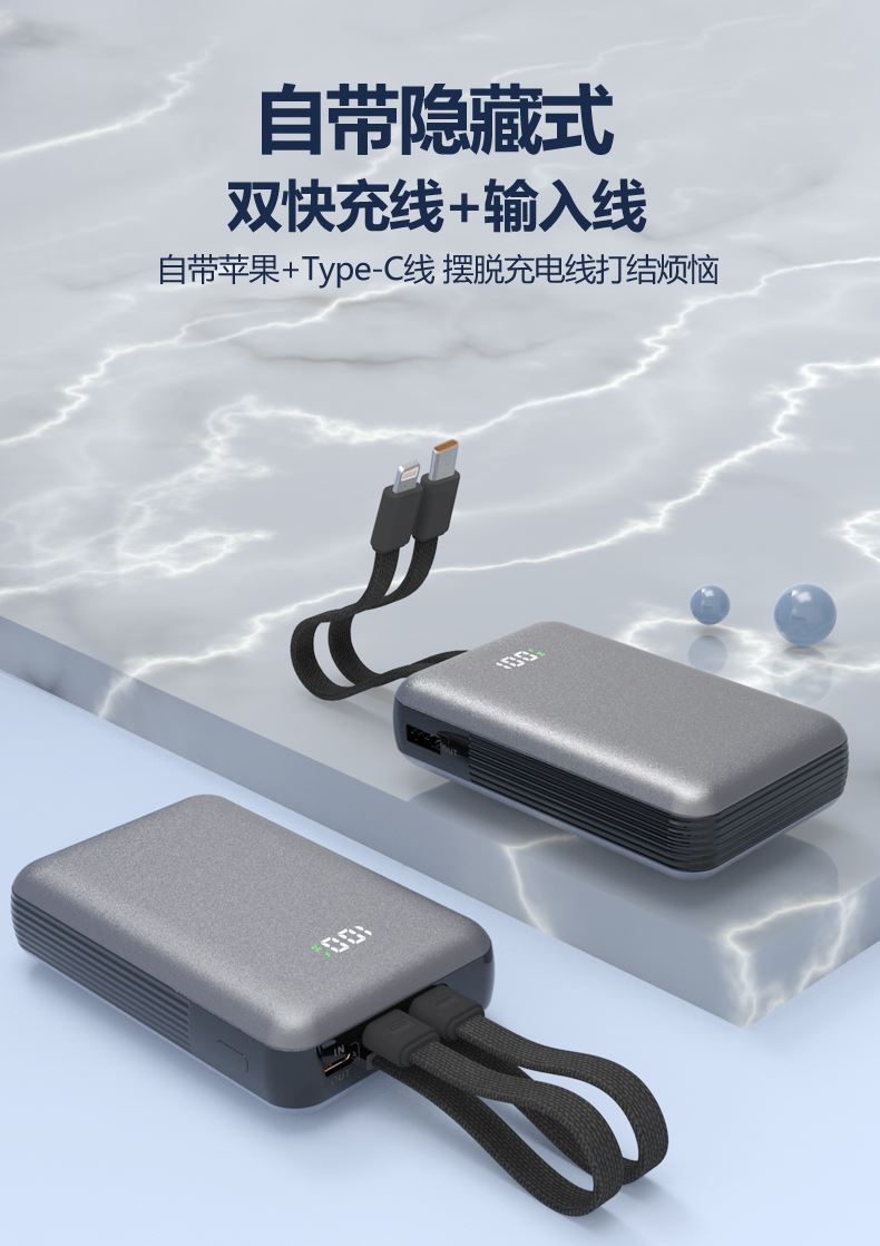 十足酷数显快充自带线移动电源GN-125