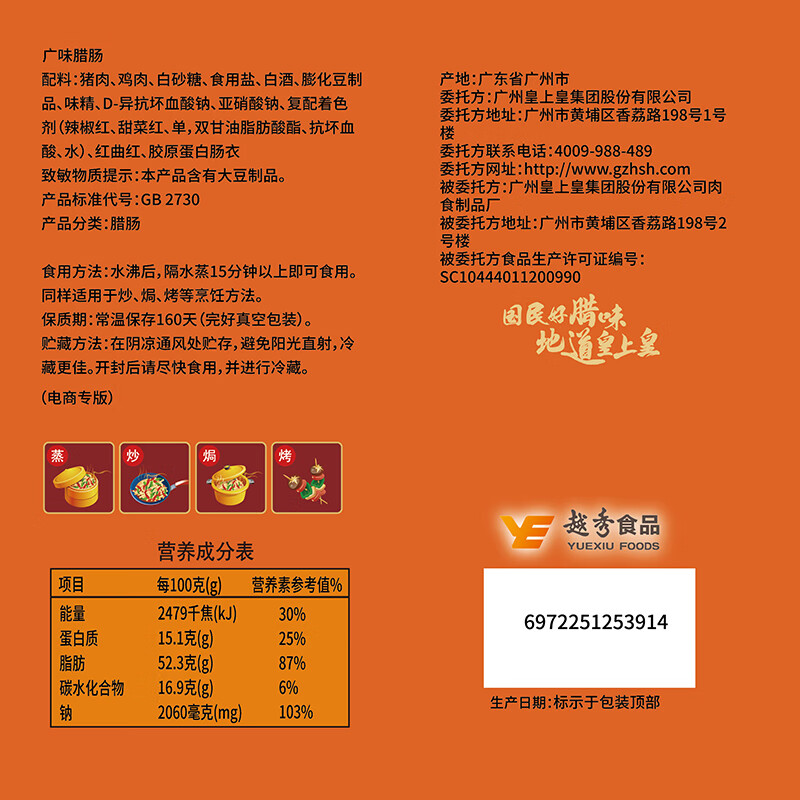 皇上皇广味腊肠900g