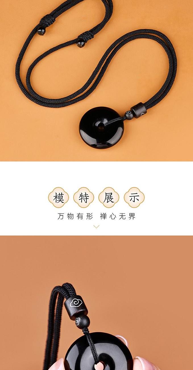 防护,百无禁忌: 黑曜石从材质上提供强大的辟邪和能量防护盾,而平安扣从形态上承担 “锁住平安,隔绝厄运” 的使命。两者结合,寓意着为佩戴者构建一个极其坚固的能量屏障,尤其适合感觉自身能量场较弱、需要强力保护的人。 先破后立,净中得静: 黑曜石先 “破”——破除邪祟、吸收负能量;无事牌后 “立” ——立下平安、宁静的愿景。黑曜石净化你的能量场后,无事牌的“空”和“无”才能更好地带来内心的宁静与祥和。寓意着 “净化身心,方得自在”。