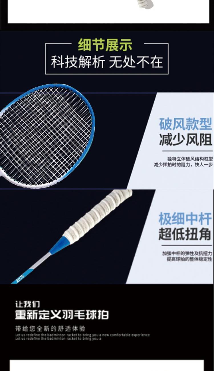 产品配置:羽毛球拍* 1副、精美礼盒* 1 产品规格: 1、拍杆:合金 2、拍框:合金 3、拍皮:PU 4、拍柄:木柄 5、尺寸:65.5*20cm 产品特点: 1、拍框线孔平滑拱形设计,有效减小线的压力并提高耐用度; 2、方形拍框,大幅度提升击球面积,受力均匀,提升击球准 确率; 3、流体型拍框结构,有效减少空气阻力,击球速度更快, 4、防滑手柄,手感舒适不振手,更轻更耐用;