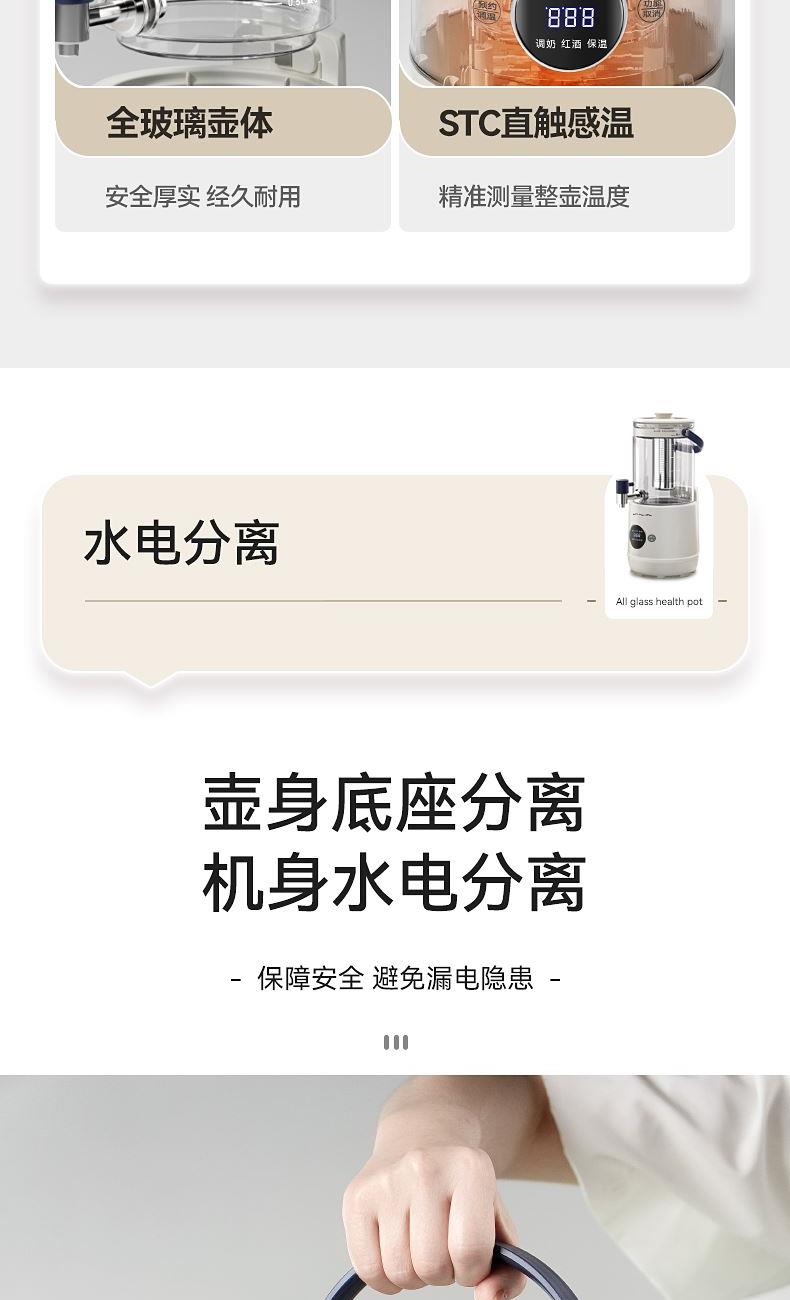 产品颜色:米白 产品材质:pp+高硼硅玻璃 额定电压:220V~ 额定容量:2.8L 额定功率:800W 单台净重:1.9kg 单台毛重:2.3kg 产品尺寸:184*260*387mm 内箱尺寸:380*210*260mm 外箱尺寸:655*395*530mm 产品清单:主机*1/电源线*1/说明书*1 单台净重:1.9kg 单台毛重:2.3kg 产品尺寸:184*260*387mm 内箱尺寸:380*210*260mm 外箱尺寸:655*395*530mm 产品清单:主机*1/电源线*1/说明书*1