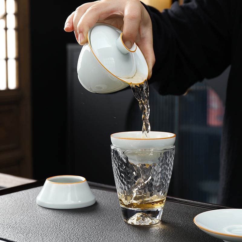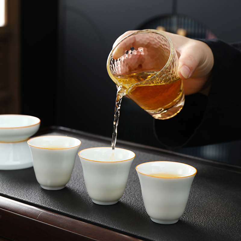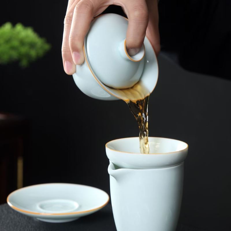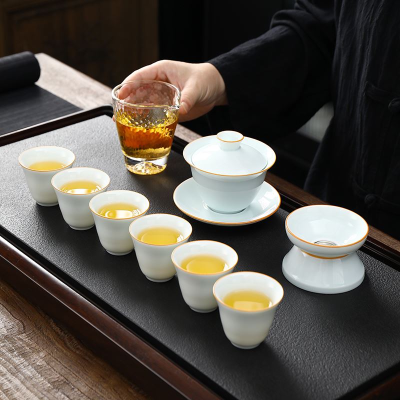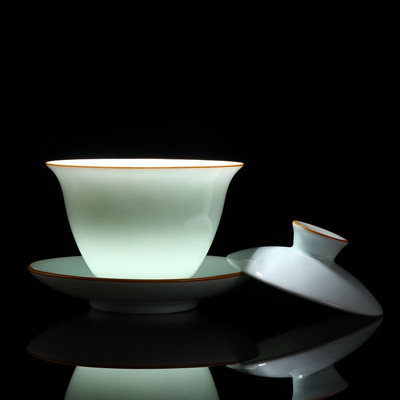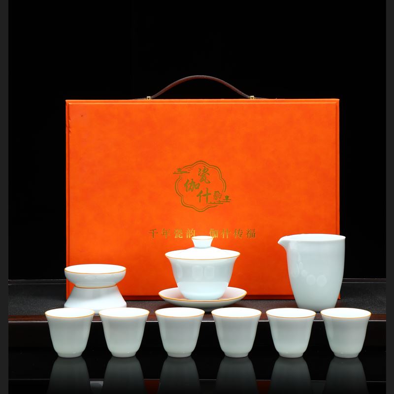 盖碗1:宽11cm*高8.8cm 130ml 茶海1:宽8.8cm*高8.9cm 180ml 茶漏1:宽7.7cm*高5cm 茶杯1:宽5.7cm*高5cm 55ml 原矿瓷土,高温烧制,多道工序人工打磨专注精品。 高纯度釉水,高温烧制,影青颜色如梦如幻。 触感柔滑细腻,温润如玉,雅致耐看。 礼盒简约大气,送礼佳品。