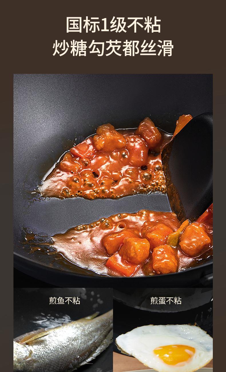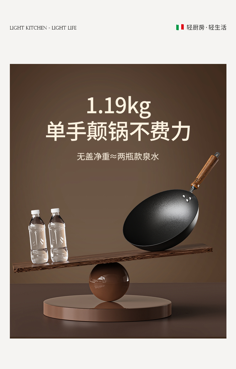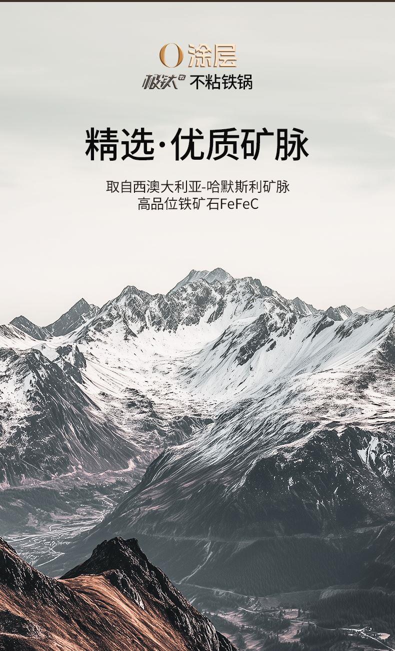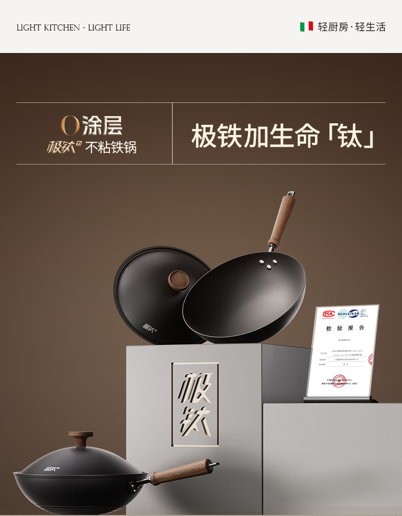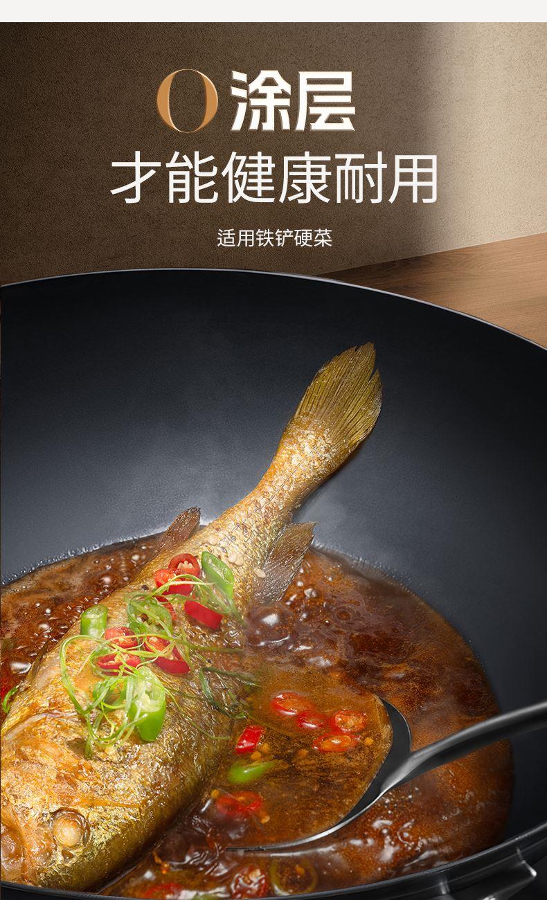 产品规格:32cm 产品货号:2301080432 彩盒尺寸:400*375*142mm 1、等离子钛熔覆,”0”涂层,国标1级不粘 2、精选优质钢材,含铁量达到99.6%,高纯铁更健康 3、高温窒化氮化工艺,不生锈 4、专属晶螺纹锅底,防滑耐磨 5、高拱铁盖设计,蒸汽回流,保温锁鲜 6、人体力学手柄,握感舒适,隔热防烫 7、明火灶具使用