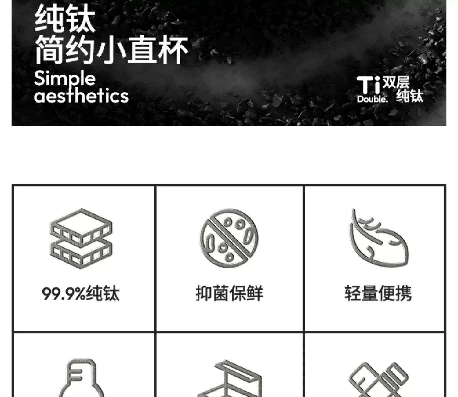 型号:VO-JY35ZB-T 颜色:山川白,幻月黑 容量:350ml 尺寸:165*66mm 材质:纯钛