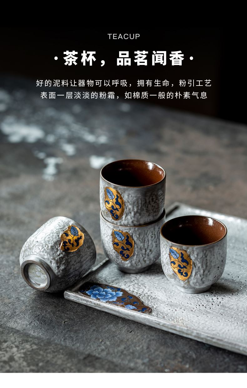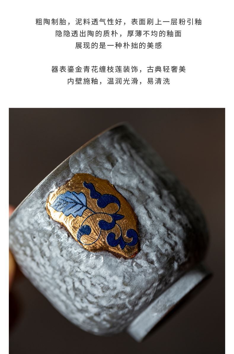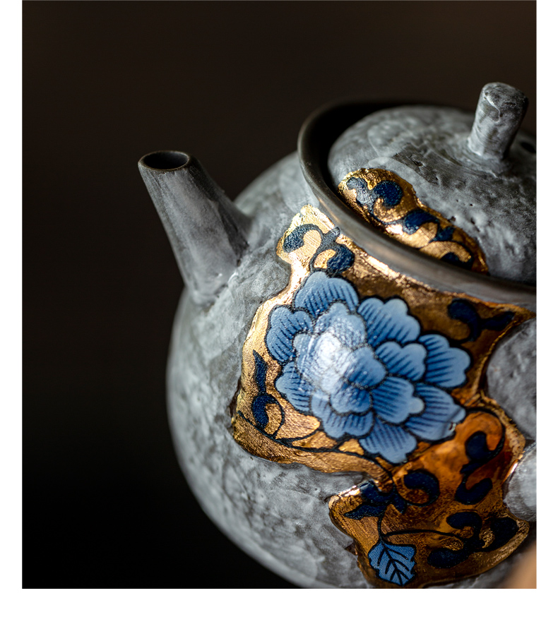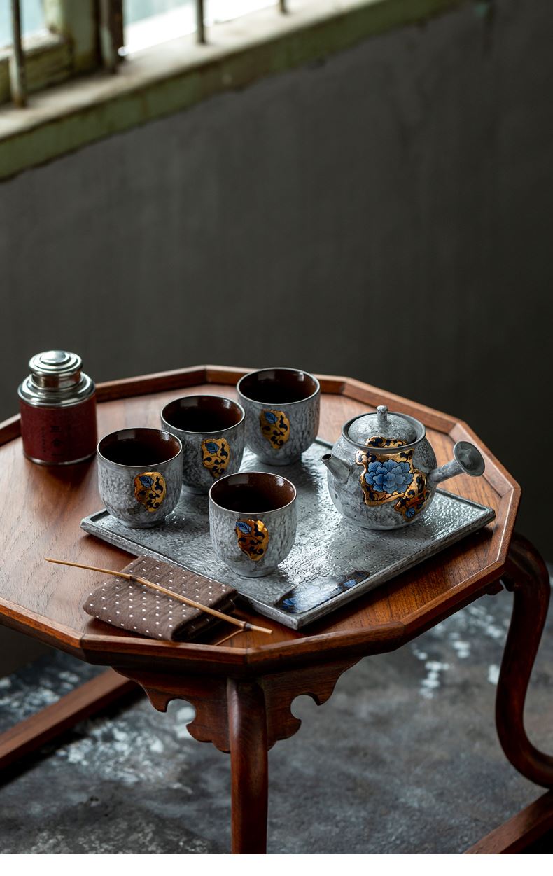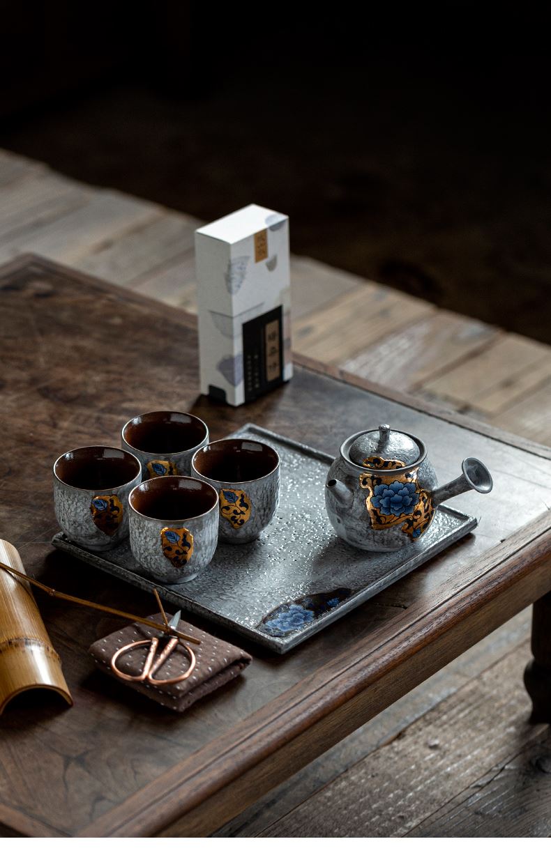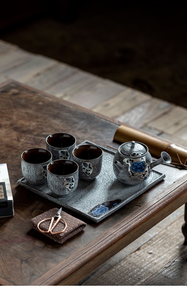 尾桥下窑粉引青花缠枝莲古典侧把壶茶具套装节日茶室商务礼品
