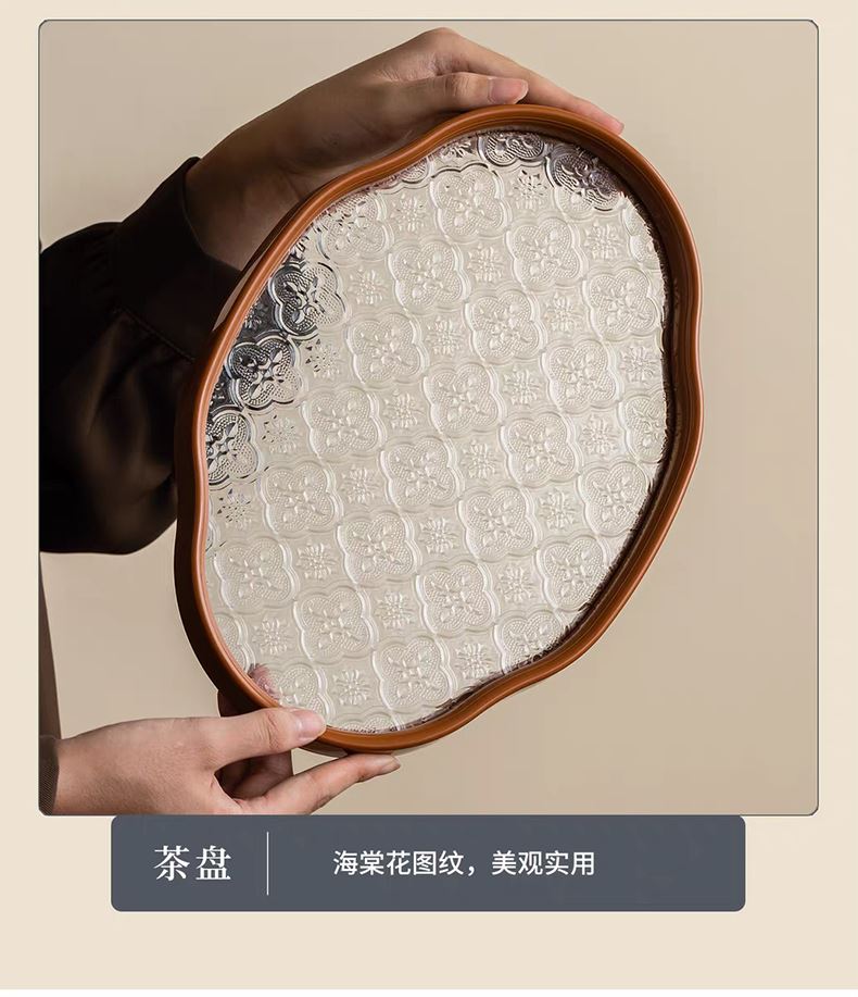 配置:提梁壶长度14.2cm高度17cm 容量500ml, 茶杯长度6.2cm高度6cm 容量100ml, 茶盘长度29cm宽度20.5cm高度2.2cm, 礼盒长度30cm宽度22cm。高度12cm